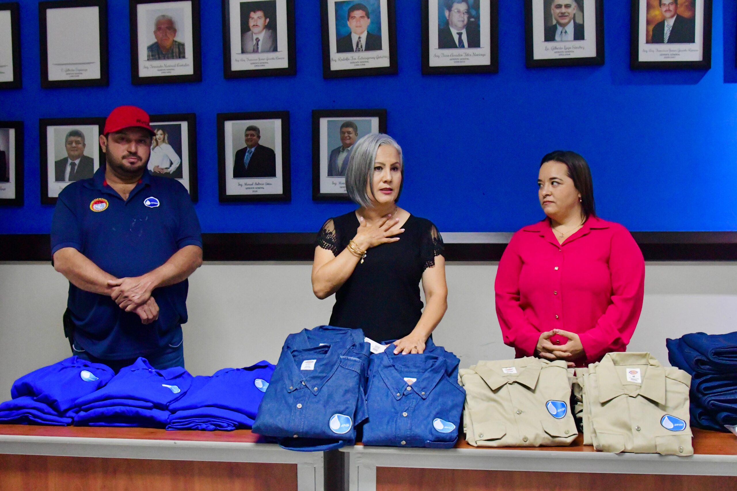 Guamúchil, Sin.- En un acto que reafirma el compromiso con los derechos laborales, la presidenta municipal de Salvador Alvarado, Lupita López González, hizo entrega de uniformes al personal sindicalizado de la Junta Municipal de Agua Potable y Alcantarillado de Salvador Alvarado (JAPASA).