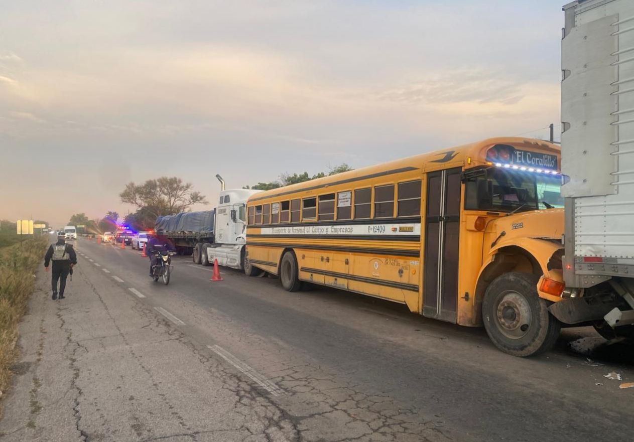 Guasave, Sin.– Una carambola en la que se vieron involucrados dos vehículos de carga y un transporte de personal al campo, se registró la madrugada de este jueves 29 de enero sobre la carretera internacional México-15, sin que se reportaran personas lesionadas.