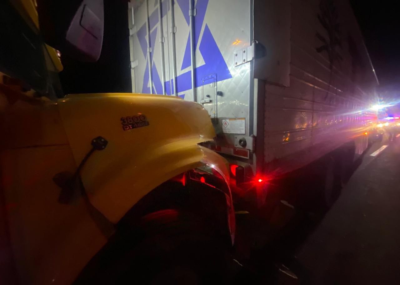 La primera unidad corresponde a un tractocamión marca Kenworth, línea T800, color amarillo, modelo 2023, con placas del transporte federal, el cual era conducido por Camilo “N”, de 43 años de edad, quien transportaba mercancía de importación.