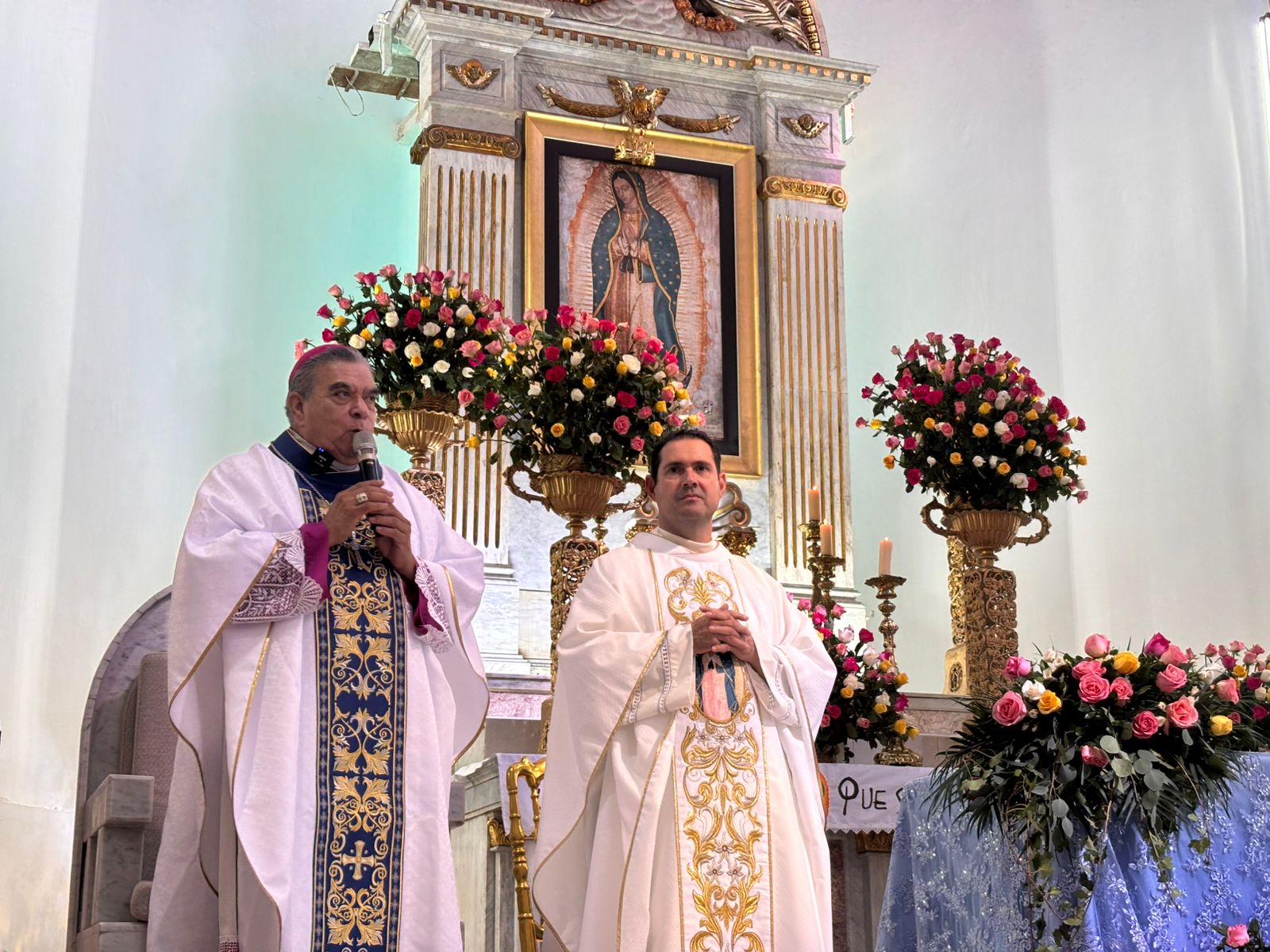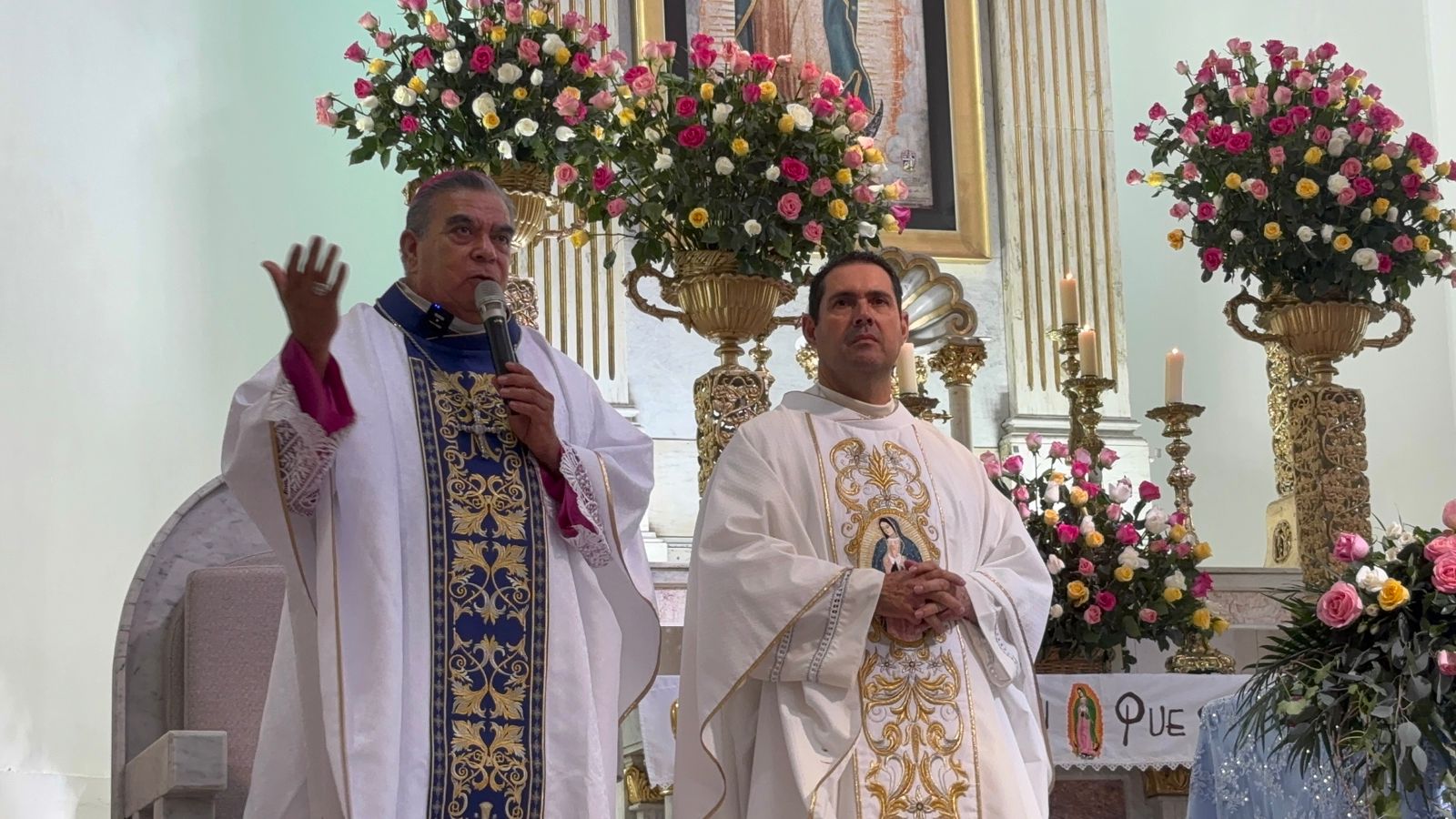Durante este 12 de diciembre, el señor Obispo de la Diócesis de Culiacán, Jesús José Herrera, fue el encargado de oficiar la santa misa en el Santuario de Guadalupe, donde el mensaje principal al pueblo feligrés es la unión de las comunidades que vienen a emanar la paz y el reencuentro con la fe, con la esperanza de que estos tiempos guadalupanos sean un motivo para seguir sembrando la paz y la seguridad que tanta falta hace en el estado de Sinaloa.