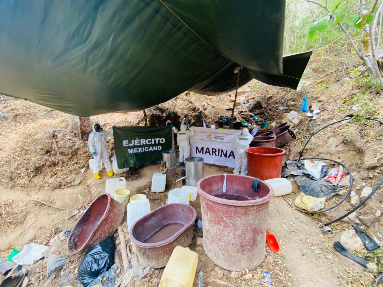 De esta manera, la Secretaría de Marina, a través de la Armada de México, contribuye en la suma de esfuerzos para combatir las conductas delictivas, traducidas tanto en el establecimiento de laboratorios clandestinos, como en la elaboración de drogas sintéticas en nuestro país, debilitando con ello la producción y distribución de drogas por parte de grupos delictivos.