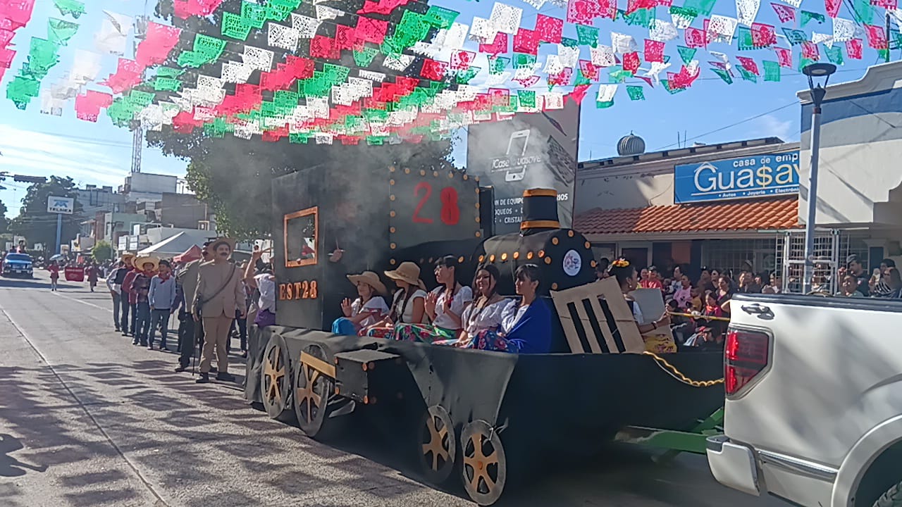 Precisó que el desfile es uno de los más representativos del municipio, que reunió a estudiantes, docentes y agrupaciones que dieron vida a un recorrido lleno de color, música y representaciones alusivas a la Revolución Mexicana.