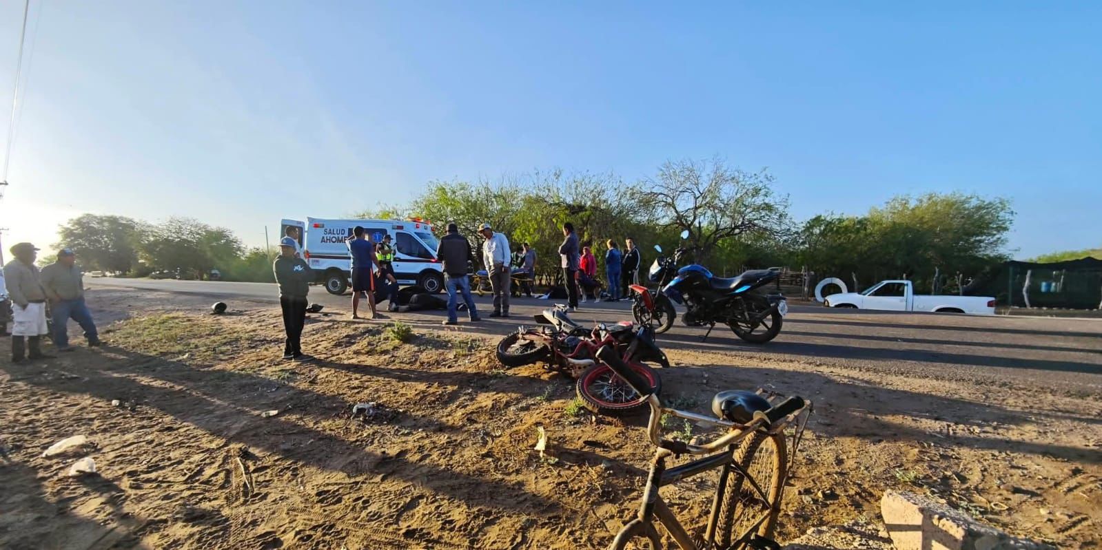 Ahome, Sin.- Una menor de edad y un motociclista fueron trasladados de urgencia a hospitales de la región luego de un accidente ocurrido la mañana de este jueves 19 de marzo de 2026 en la comunidad de Bacorehuis, perteneciente al municipio de Ahome.
