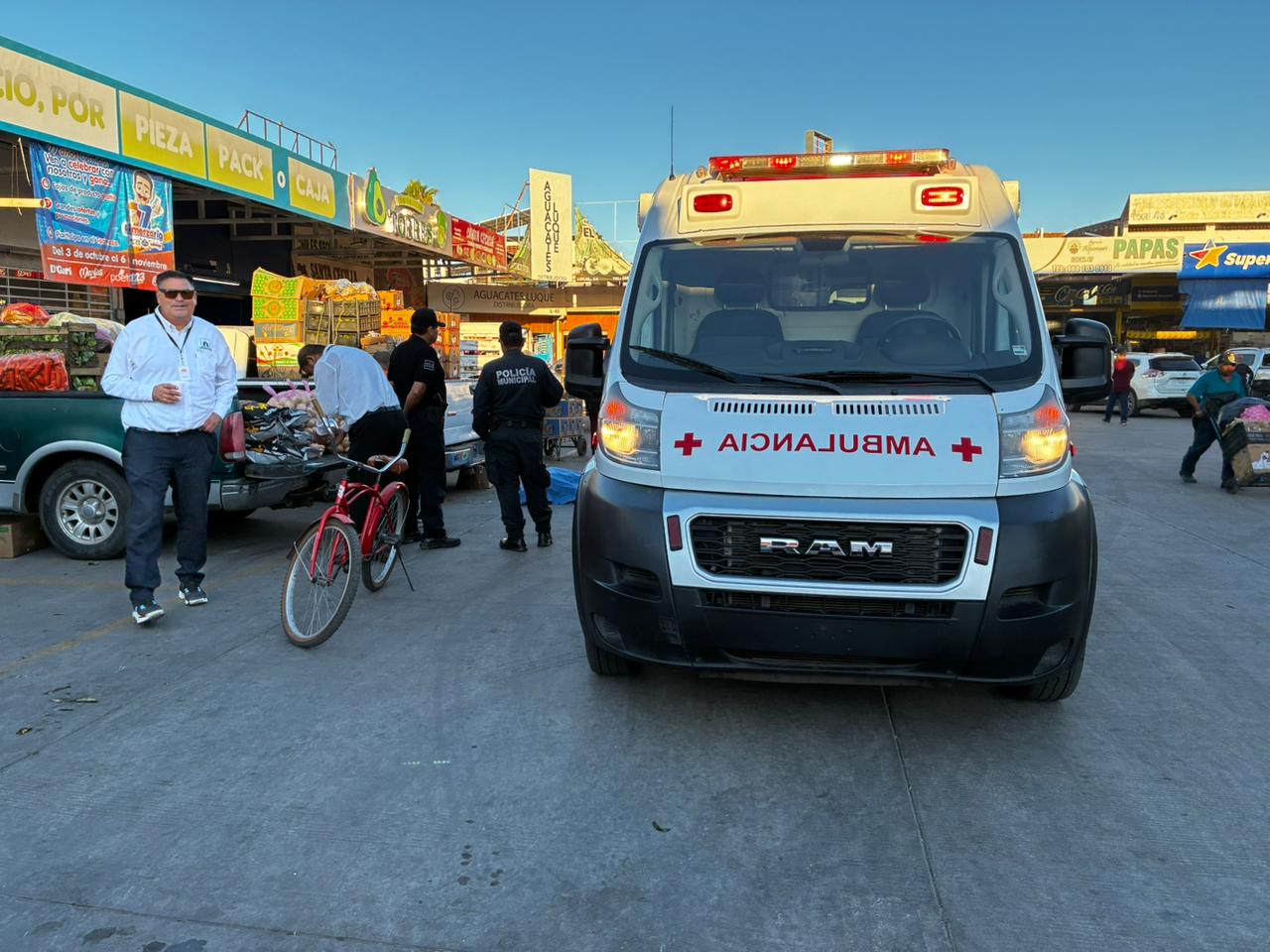 Según testigos, el hombre se desvaneció repentinamente mientras realizaba sus labores como cargador. Sus compañeros de trabajo dieron aviso inmediato al número de emergencias 911. Paramédicos de la Cruz Roja acudieron al sitio y, tras brindarle atención prehospitalaria, confirmaron que ya no contaba con signos vitales. El cuerpo fue cubierto con una sábana azul en espera de las autoridades.