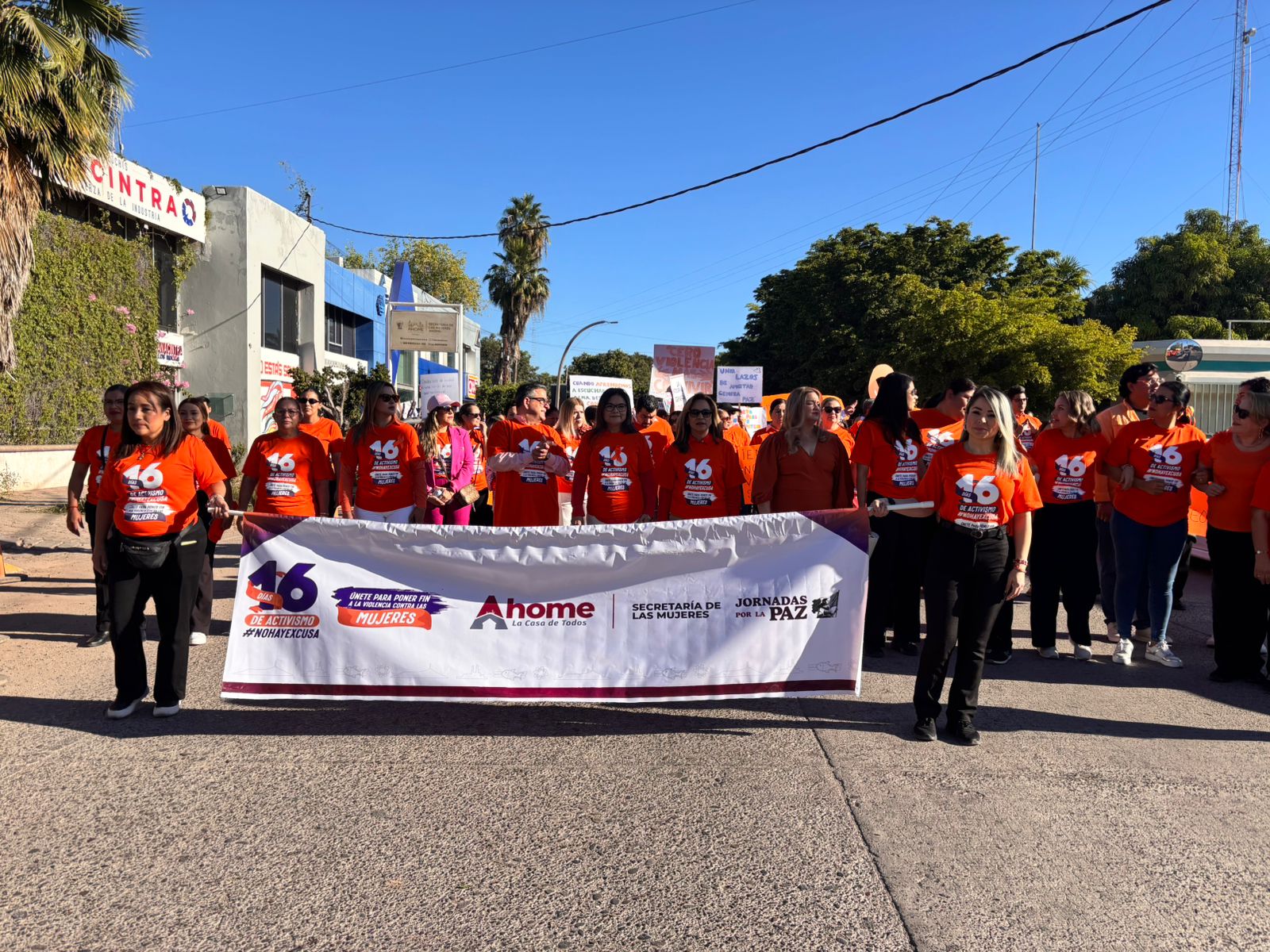 Los Mochis, Sin.- Dentro del marco del Día Internacional para la erradicación de la violencia contra mujeres y niñas, la Secretaría de las Mujeres en Ahome encabezó la marcha ‘’Únete’’ donde autoridades municipales, activistas y mujeres de la sociedad se sumaron a este contingente que recorrió las calles principales de la ciudad para llevar mensajes de ‘’No estás sola’’, ‘’Mujer escucha esta es tu lucha’’ y ‘’Ni una más’’.