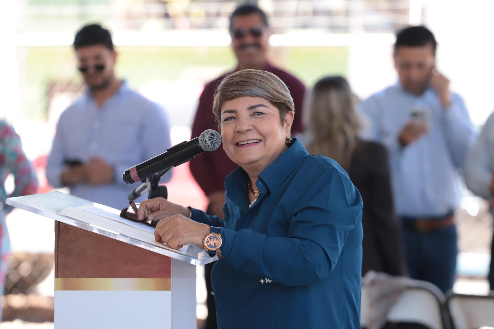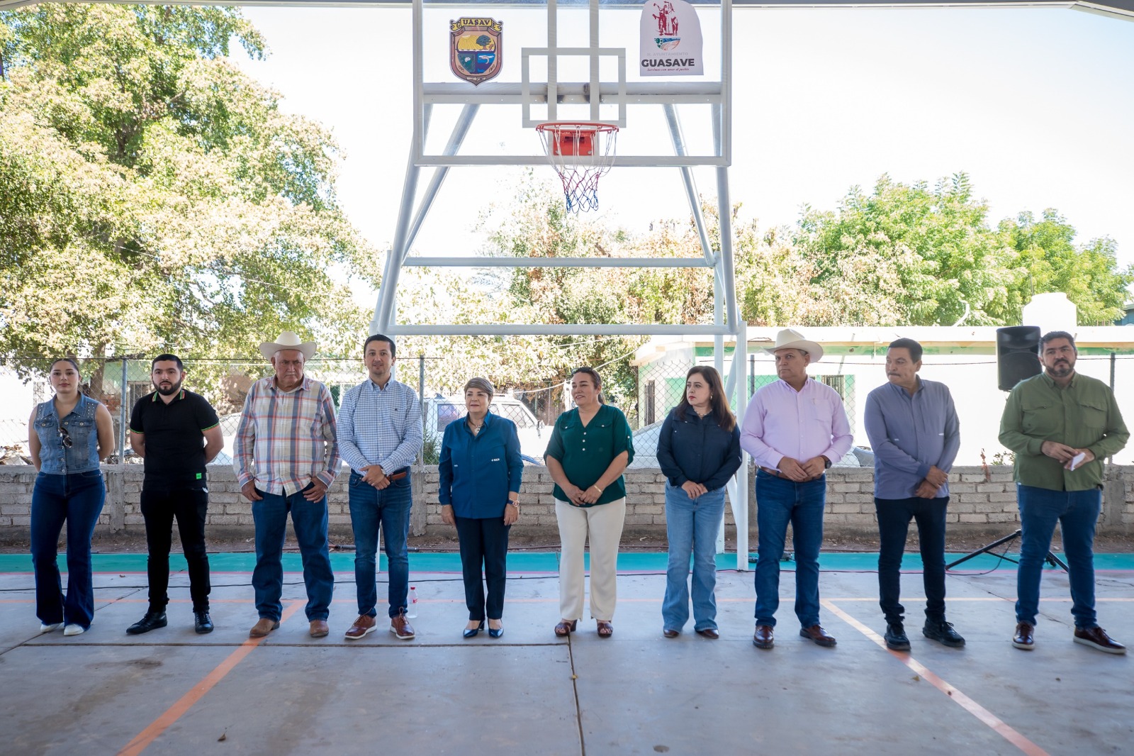 Guadalupe Gutiérrez y el presidente del Comisariado Ejidal, Feliciano López Gaxiola, agradecieron a la presidenta municipal esta techumbre, para que las familias tengan un lugar digno y seguro para hacer eventos y practicar el deporte.