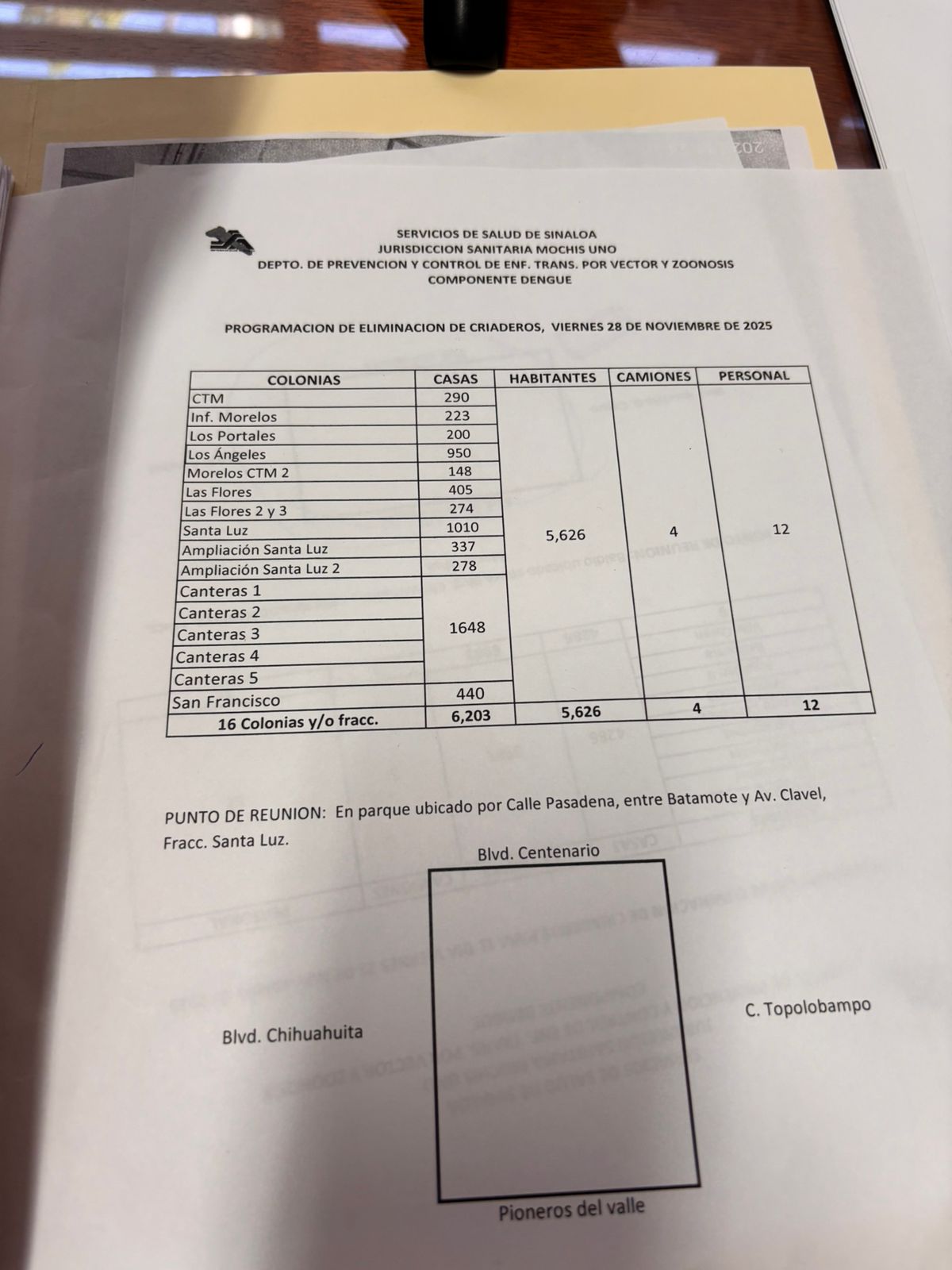 ‘’Precisamente por eso estamos intensificando las acciones porque hemos tenido un repunte en los casos de dengue, tenemos 211 casos en el municipio de Ahome, en la jurisdicción tenemos 337 casos, en las últimas 3 semanas se han incrementado la frecuencia, sobre todo en el área urbana’’.