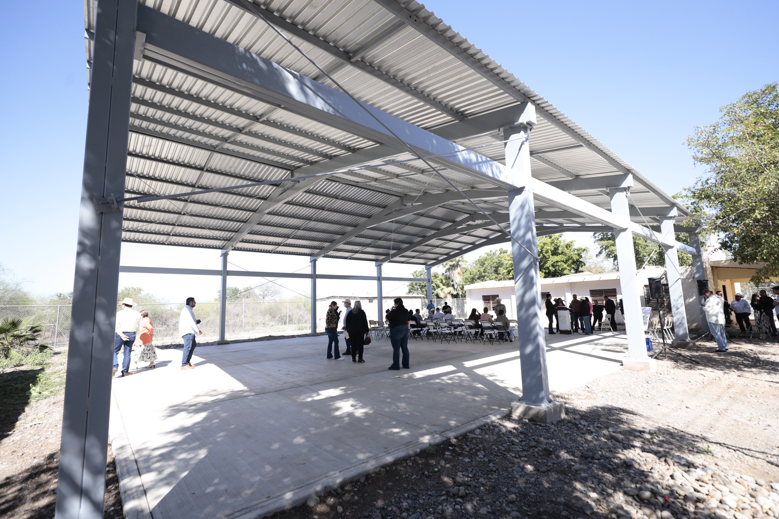 Guasave, Sin.- Con el fin de dignificar los espacios públicos para las familias y el deporte, la presidenta municipal Cecilia Ramírez Montoya, inauguró techumbres metálicas en El Pitahayal, en la sindicatura de El Burrión y en el ejido Las Aguamitas, sindicatura de Bamoa, con una inversión total de 3 millones 830 mil 399 pesos del Ramo 33 y del Impuesto Predial Rústico.