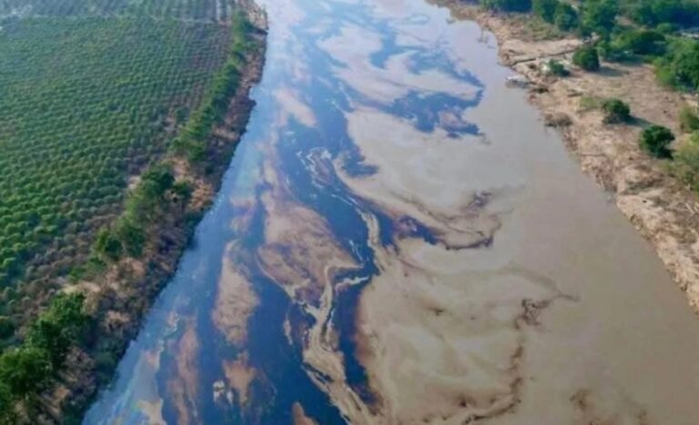 Xalapa, Ver.- Un derrame de hidrocarburo se registró en alrededor de ocho kilómetros del afluente del río Pantepec, municipio de Álamo Temapache, luego de que