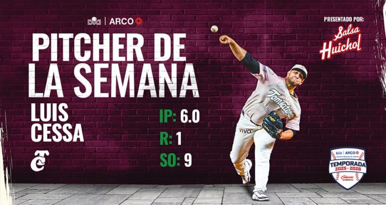 Guadalajara, Jal.- El lanzador de los Tomateros de Culiacán, Luis Cessa, se lleva el nombramiento a Pítcher de la Semana presentado por Salsa Huichol, al tener una sólida actuación el pasado