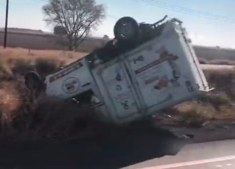 Los Mochis, Sin.- Un vendedor de pan resultó con lesiones de consideración tras volcar la camioneta en la que se desplazaba sobre la carretera federal