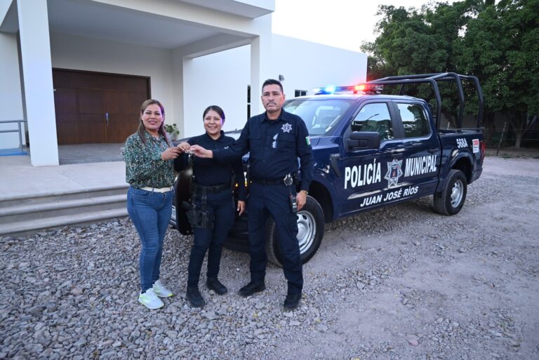 Juan José Ríos, Sin.- La alcaldesa Evangelina Llanes Carreón hizo entrega de una patrulla para la Dirección General de Seguridad Ciudadana y Movilidad Sustentable que