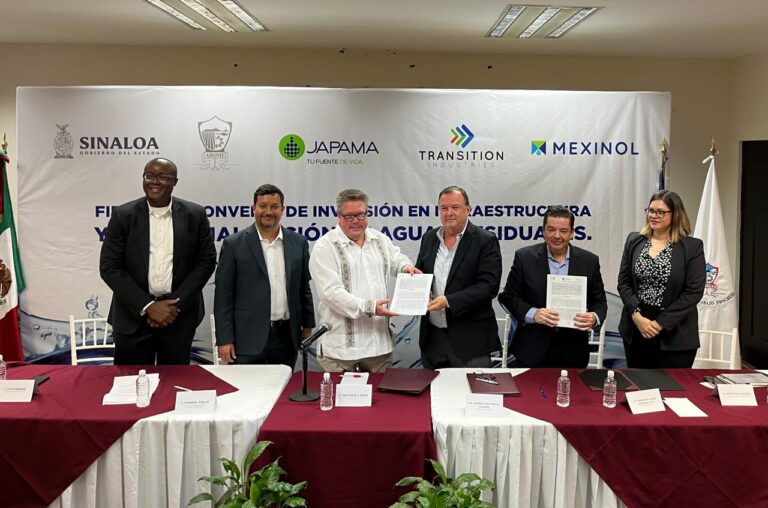 Los Mochis, Sin.- Autoridades del Ayuntamiento de Ahome y representantes Mexinol firmaron este martes el contrato de inversión y comercialización de aguas residuales entre Japama