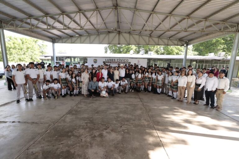 Guasave, Sin.- Al encabezar el Lunes Cívico, en el COBAES 47 “Profesor Miguel C. Castro”, de La Brecha, la presidenta municipal Cecilia Ramírez Montoya se