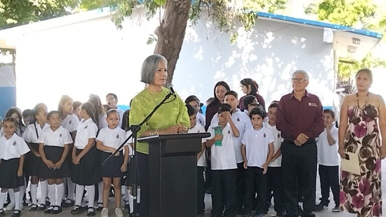 Guamúchil, Sin.- Durante la celebración del “Luces Cívico” en la escuela primaria Gral. Vicente Guerreo “FORD Num. 8”, la presidenta municipal Lupita López González se