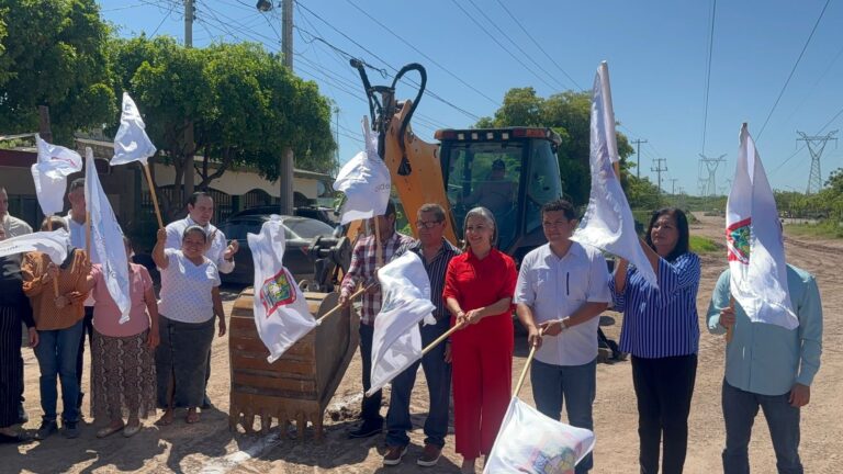Guamúchil, Sin.- La presidenta municipal de Salvador Alvarado, Lupita López González, puso en marcha la rehabilitación de 179 metros lineales del colector de drenaje sanitario