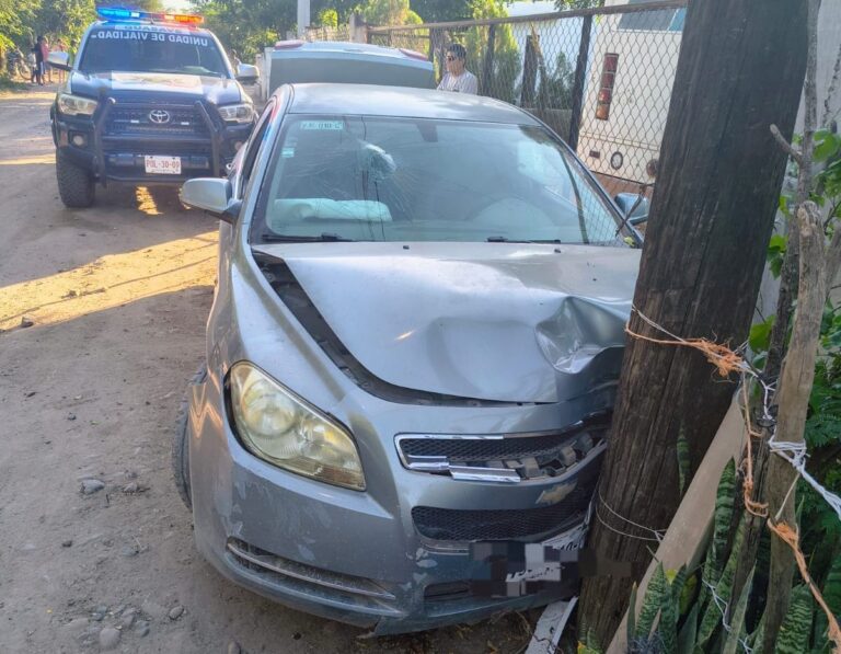 Guasave, Sin.- La tarde de este martes se registró un accidente de tránsito tipo choque contra un objeto fijo en la comunidad de Las Moritas