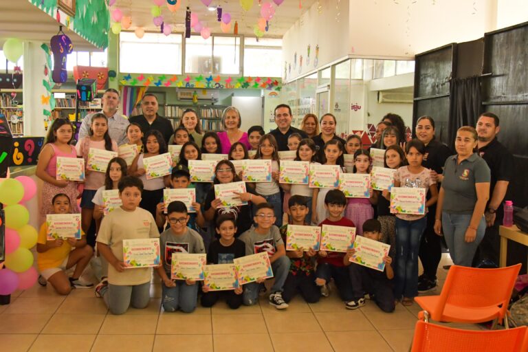 Guamúchil, Sin.- Con gran entusiasmo y participación de niñas y niños, se llevó a cabo la clausura de los cursos “Mis vacaciones en la biblioteca”,