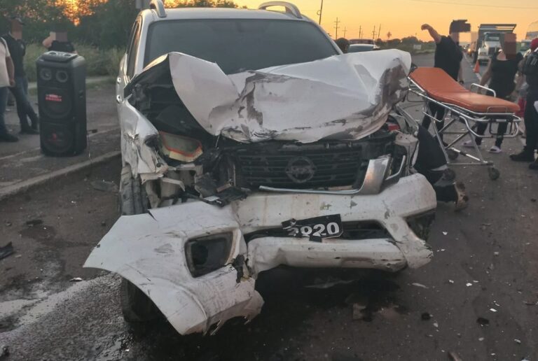 Guasave, Sin.- Un fuerte choque tipo carambola con salida de camino dejó como resultado dos personas lesionadas, la tarde de este miércoles sobre la carretera