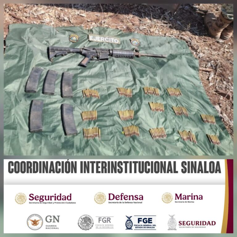 Culiacán, Sin.- Elementos del Ejército Mexicano, en coordinación con la Guardia Nacional, la Secretaría de Marina, la Secretaría de Seguridad y Protección Ciudadana, la Fiscalía General
