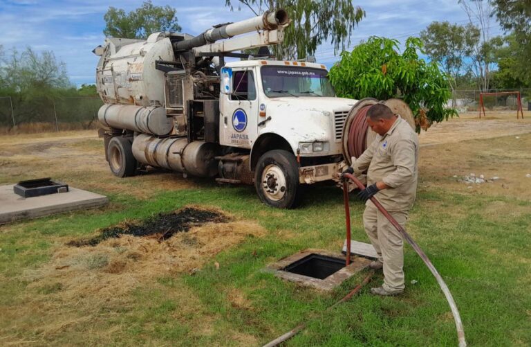 Guamúchil, Sin.- La Junta Municipal de Agua Potable y Alcantarillado de Salvador Alvarado (JAPASA) continúa atendiendo diversos problemas de drenaje en varias colonias de la