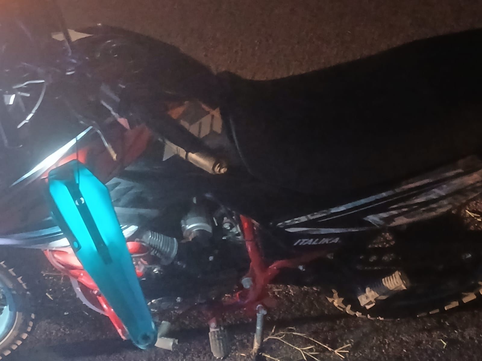Según el reporte emitido por el radio operador, se trató de un derrapamiento de una motocicleta marca Italika, modelo DM200, color negro con rojo, modelo 2025, trasladándose al lugar elementos de la policía.