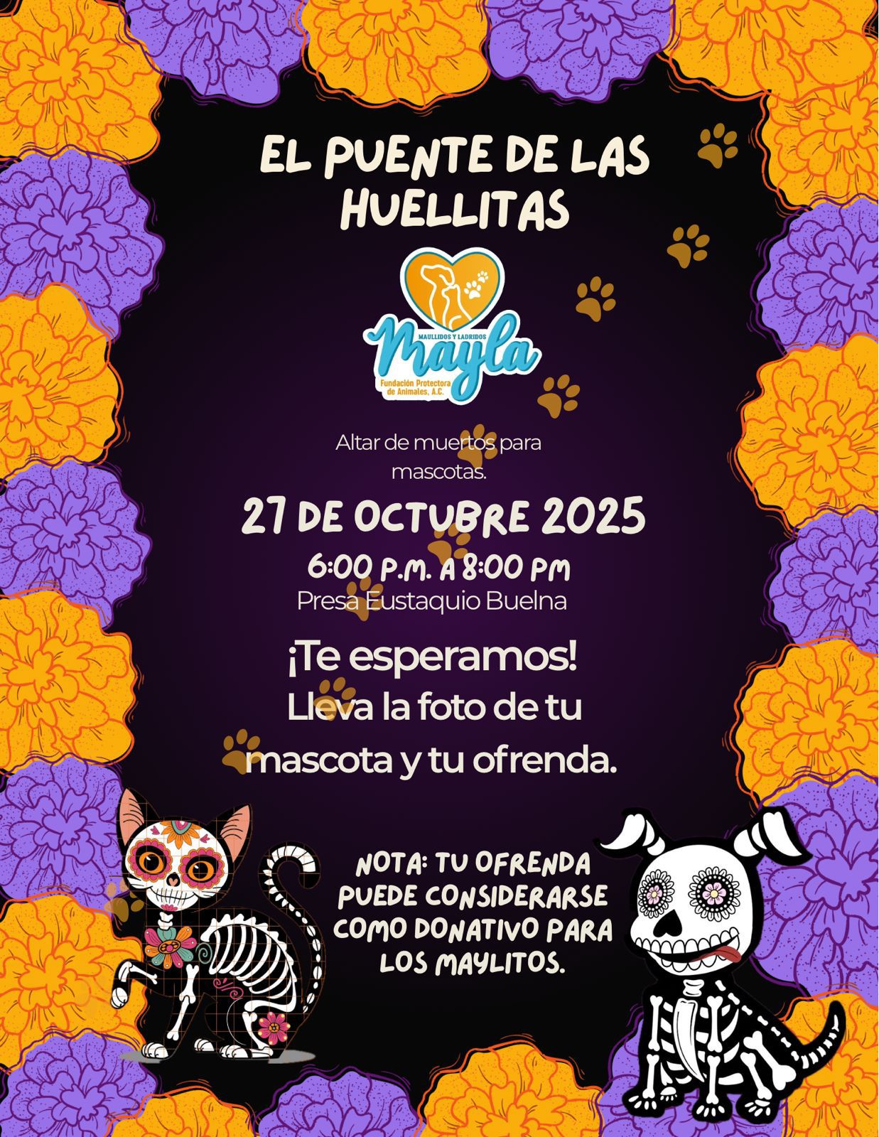Guamúchil, Sin.- El titular del Centro de Salud y Bienestar Animal (CESyBA), Jesús Alfredo Díaz Mejía, informó que, el próximo lunes 27 de octubre llevaran a cabo una actividad que llevará por nombre “El Puente de las Huellitas”, la cual consta de la colocación de un altar para recordar a las mascotas fallecidas en el marco de Día de Muertos, evento que se desarrollará en la explanada de la presa Eustaquio Buelna de 6:00 p.m. a 8:00 p.m.
