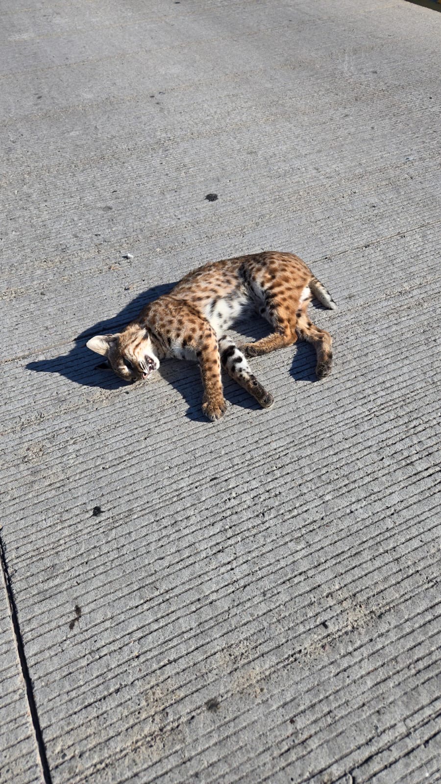 Los Mochis, Sin.- Un pequeño lince fue atropellado y quedó sin vida en la carretera Mochis-Topolobampo la mañana de este jueves.