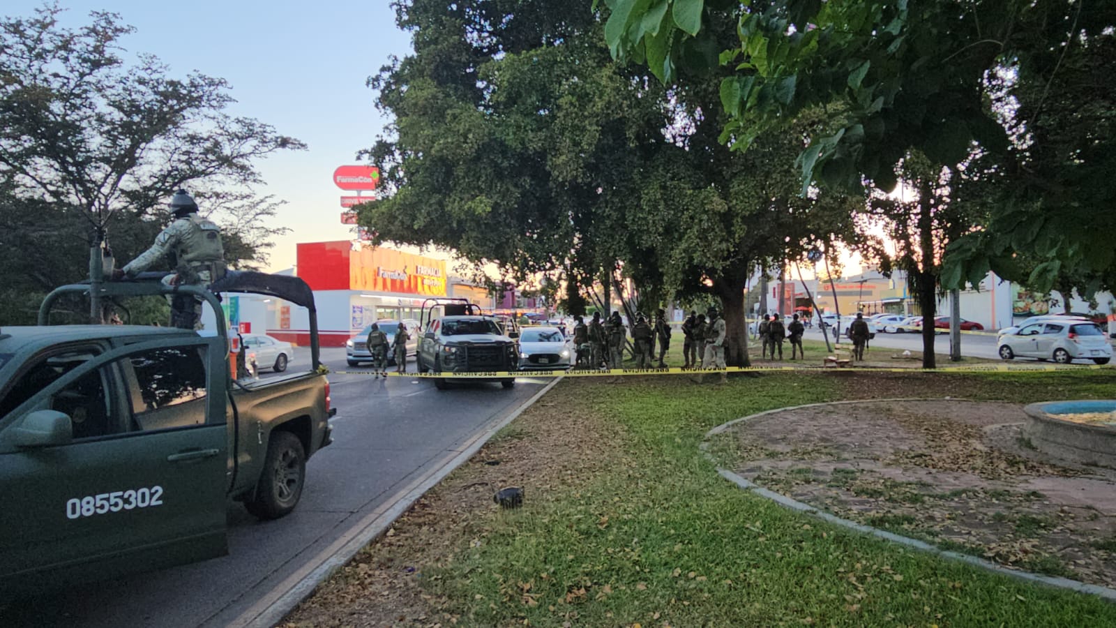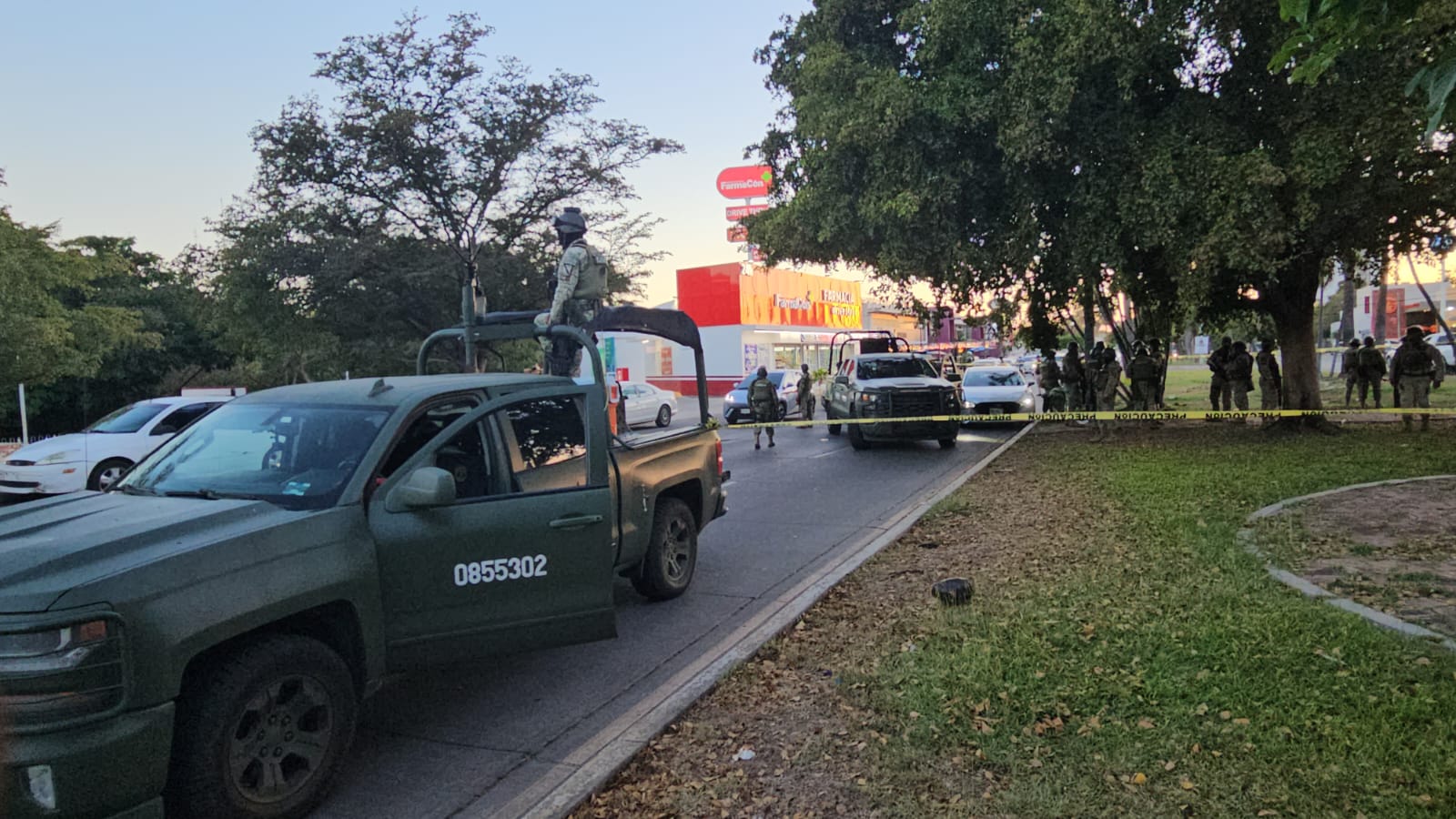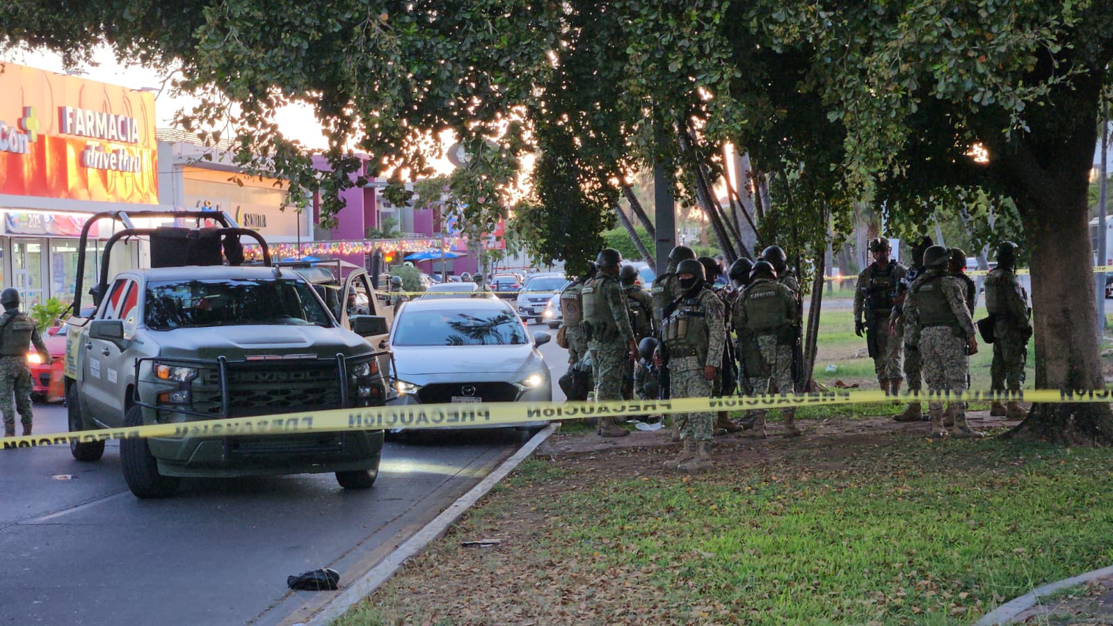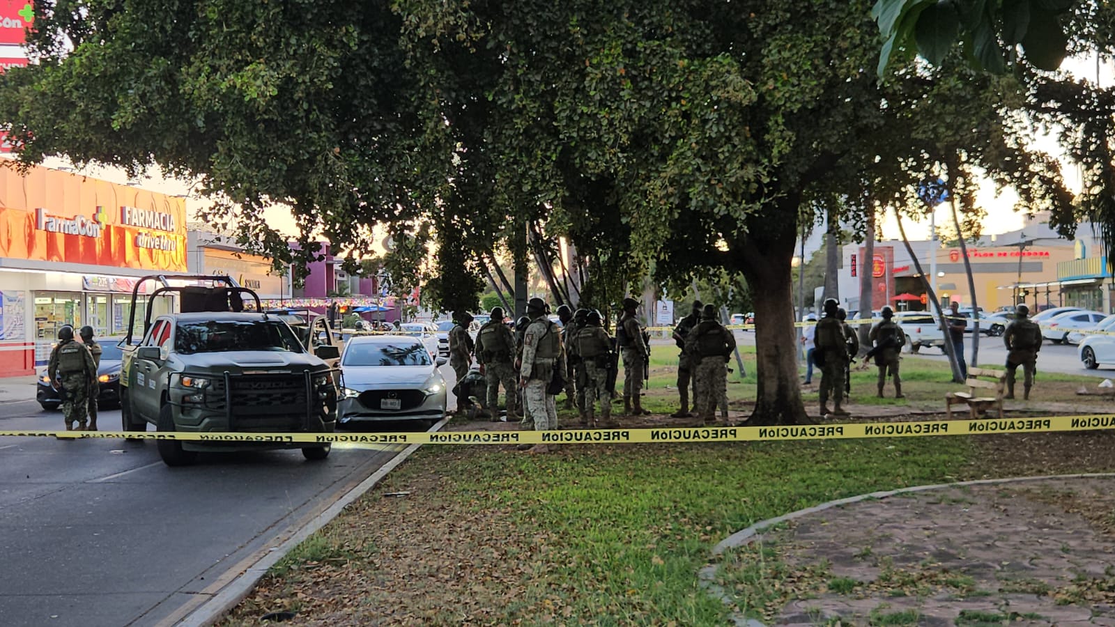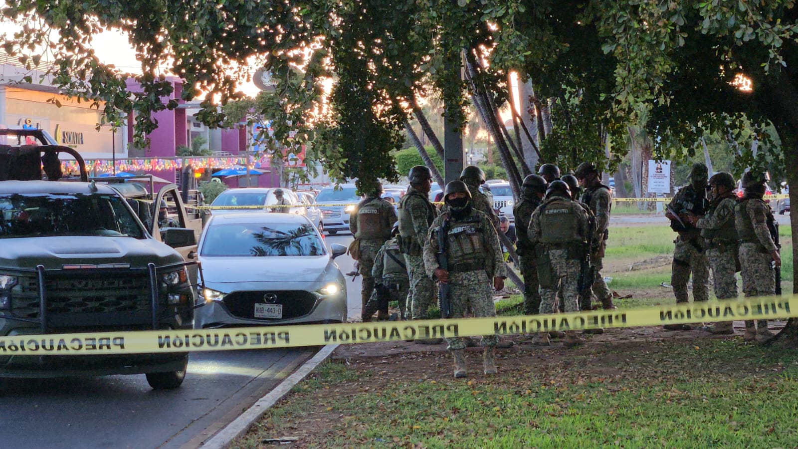 Los uniformados intentaron revisar un Mazda 3 blanco en el que viajaban varios hombres, pero los ocupantes aceleraron para escapar hacia la colonia Las Quintas. En su huida, el vehículo fue interceptado por una patrulla que lo colisionó, lo que obligó a los sospechosos a abandonarlo y correr entre la multitud hacia la colonia Chapultepec. Pese a la persecución a pie, los militares perdieron de vista a los responsables.