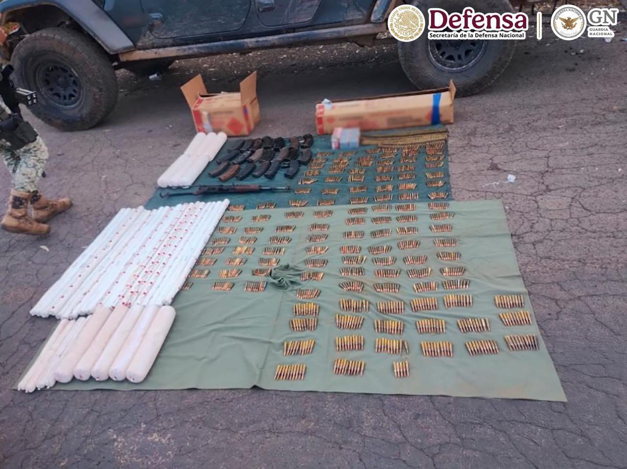 En la localidad Buenavista, los efectivos arrestaron a cinco personas, dos de ellas menores, a quienes les aseguraron cinco armas largas, 18 cargadores, mil 250 cartuchos y equipo táctico.