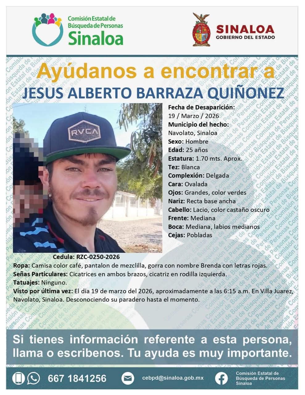 Durante las diligencias se informó que las características de la vestimenta coinciden con las de un joven identificado como Jesús Alberto, vecino de Villa Benito Juárez, quien desapareció el pasado 19 de marzo. El hombre, de 25 años, fue visto por última vez en la mañana de ese día, portando pantalón de mezclilla, camisa café y una gorra con letras rojas. La coincidencia refuerza la presunción de que se trata de la misma persona.