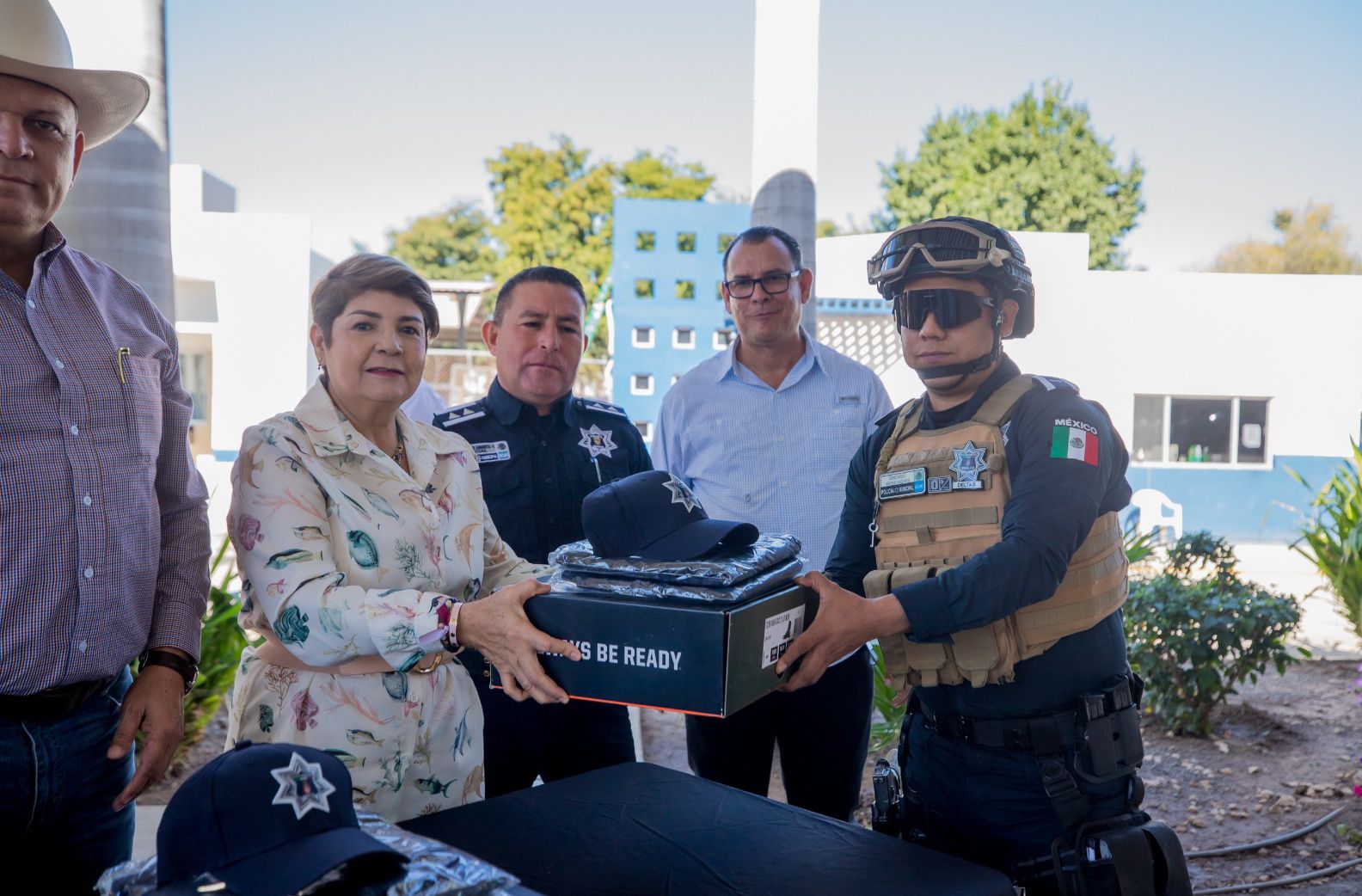 Guasave, Sin.- La presidenta municipal Cecilia Ramírez Montoya encabezó la entrega simbólica de 381 uniformes que envió el estado a elementos de la Secretaría de Seguridad Ciudadana y Movilidad Sustentable de Guasave.