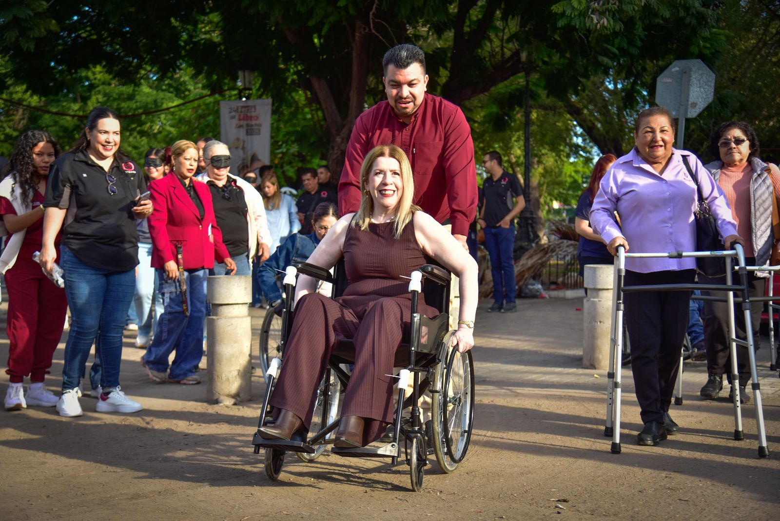 Los Mochis, Sin.- Dentro del marco del Día Mundial de la Discapacidad y dentro de la semana de actividades de ‘’Amigos por la Discapacidad’’, el Instituto para la Inclusión y Desarrollo de las Personas con Discapacidad (IMDIS), llevaron a cabo la caminata ‘’Ponte en mi lugar’’, donde funcionarios municipales salieron a las calles con los ojos vendados, bastones, sillas de ruedas y andaderas para hacer conciencia sobre las dificultades y los retos a los que se enfrentan las personas con discapacidad en su día a día y al mismo tiempo la importancia de respetar sus espacios.