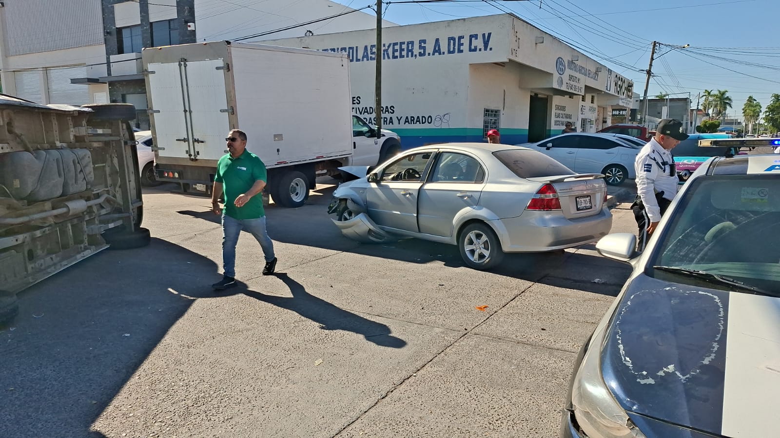 Los Mochis, Sin.- La mañana de este jueves 13 de noviembre se registró un accidente automovilístico en el sector norte de la ciudad, donde una mujer resultó lesionada y una vagoneta terminó volcada. El percance ocurrió en el cruce de las calles Revolución y Ángel Flores, en la colonia Jiquilpan, movilizando a los cuerpos de emergencia.