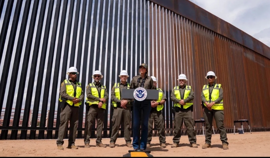 De acuerdo con Kristi Noem, cada día se construye alrededor de 0.8 kilómetros de muro a lo largo de los casi 3 mil 218 kilómetros de frontera, una de las más grandes y transitadas del mundo.
