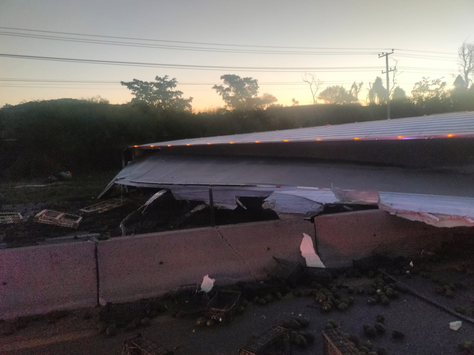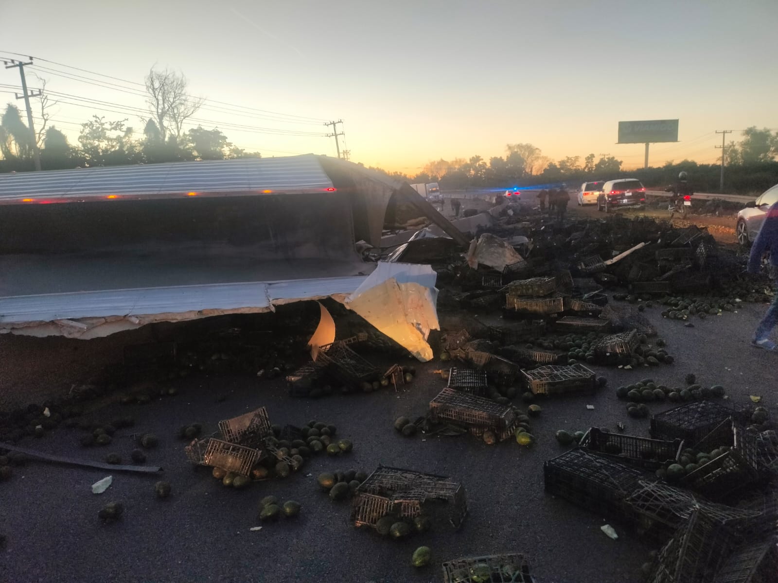 Los Mochis, Ahome.- Un tráiler cargado con aguacate volcó esta mañana en la carretera Internacional, a la altura de esta ciudad, y está ocasionando el bloqueo a la circulación en ambos sentidos de la rúa federal.