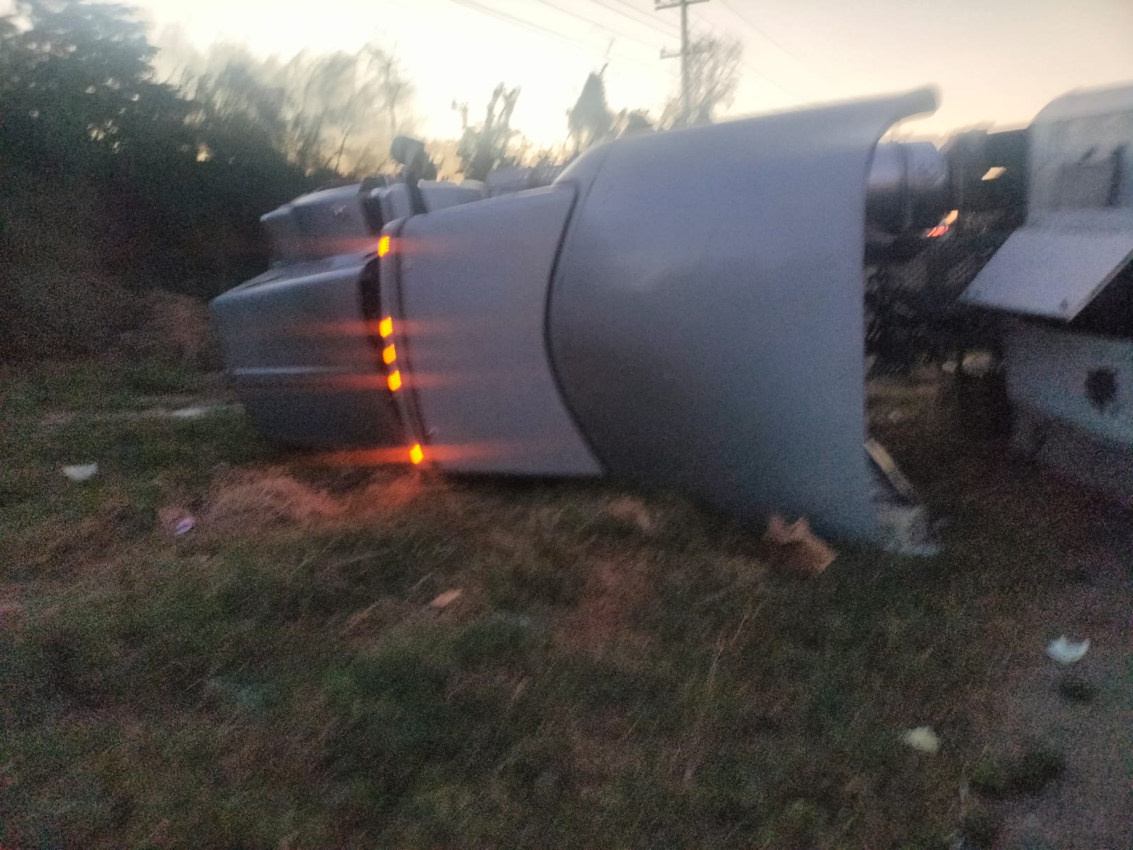 El camión volcó a la altura de Loma Dorada, a la salida norte de la ciudad.