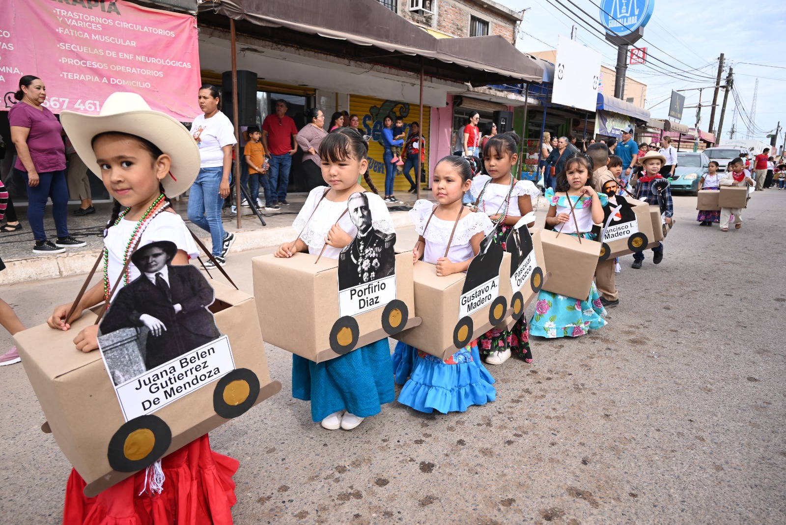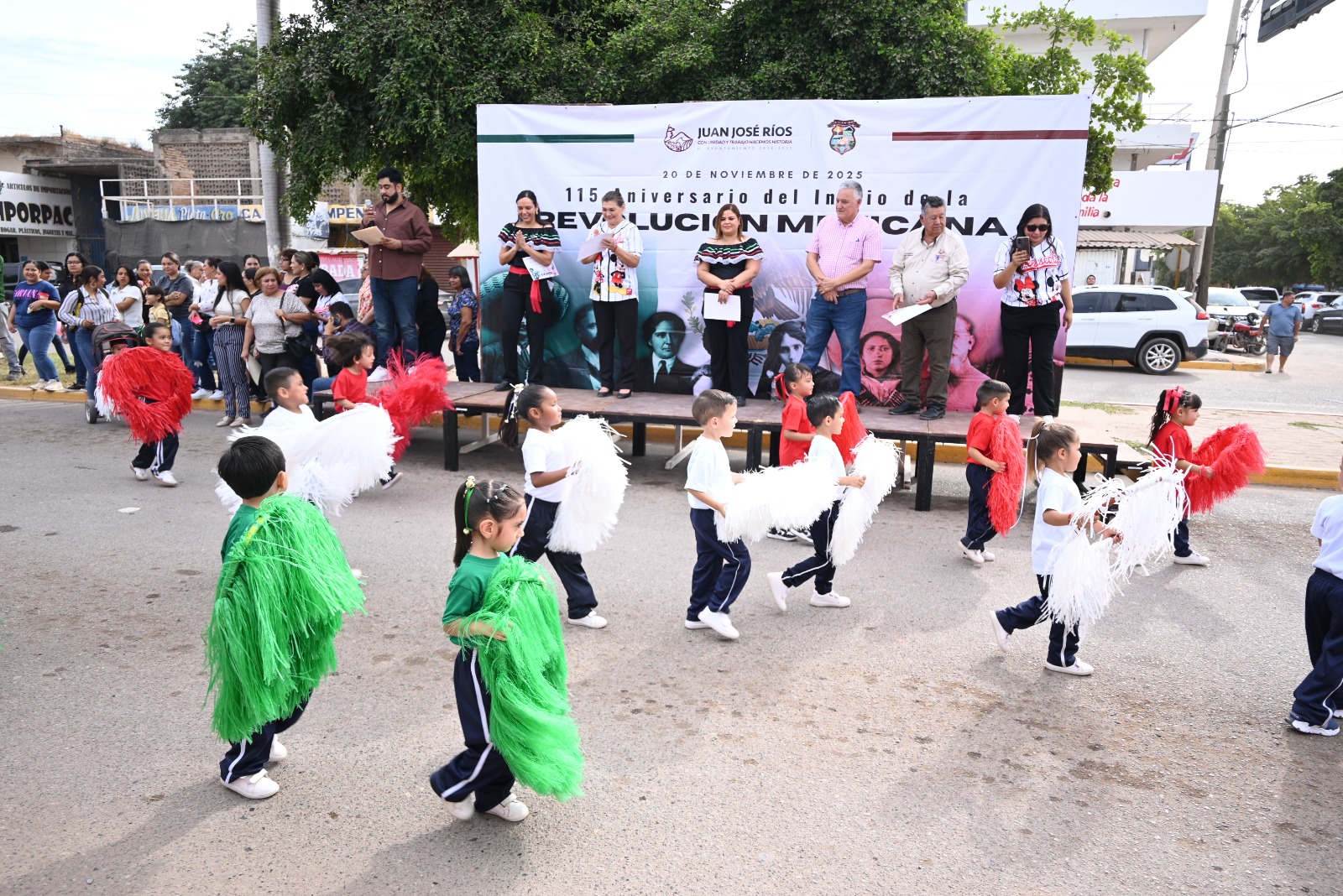Juan José Ríos, Sin.– Con gran entusiasmo y patriotismo, preescolares de Juan José Ríos participaron en el desfile conmemorativo del 115 aniversario de la Revolución Mexicana.