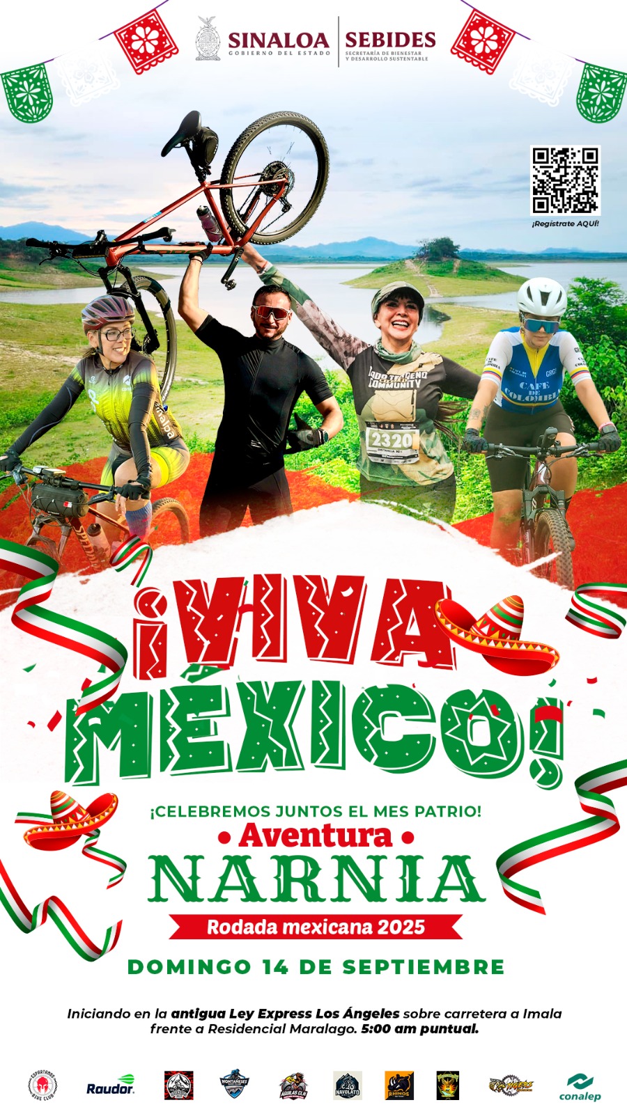 Culiacán, Sin.- El Gobierno de Sinaloa, a través de la Secretaría de Bienestar y Desarrollo Sustentable (SEBIDES), invita a la ciudadanía en general a sumarse a la Rodada Mexicana 2025 “Aventura Narnia”, que se llevará a cabo el domingo 14 de septiembre, con salida a las 5:00 a.m. desde Antigua Ley Express Los Ángeles (carretera Culiacán-Imala, frente al residencial Maralago), para terminar en Narnia.