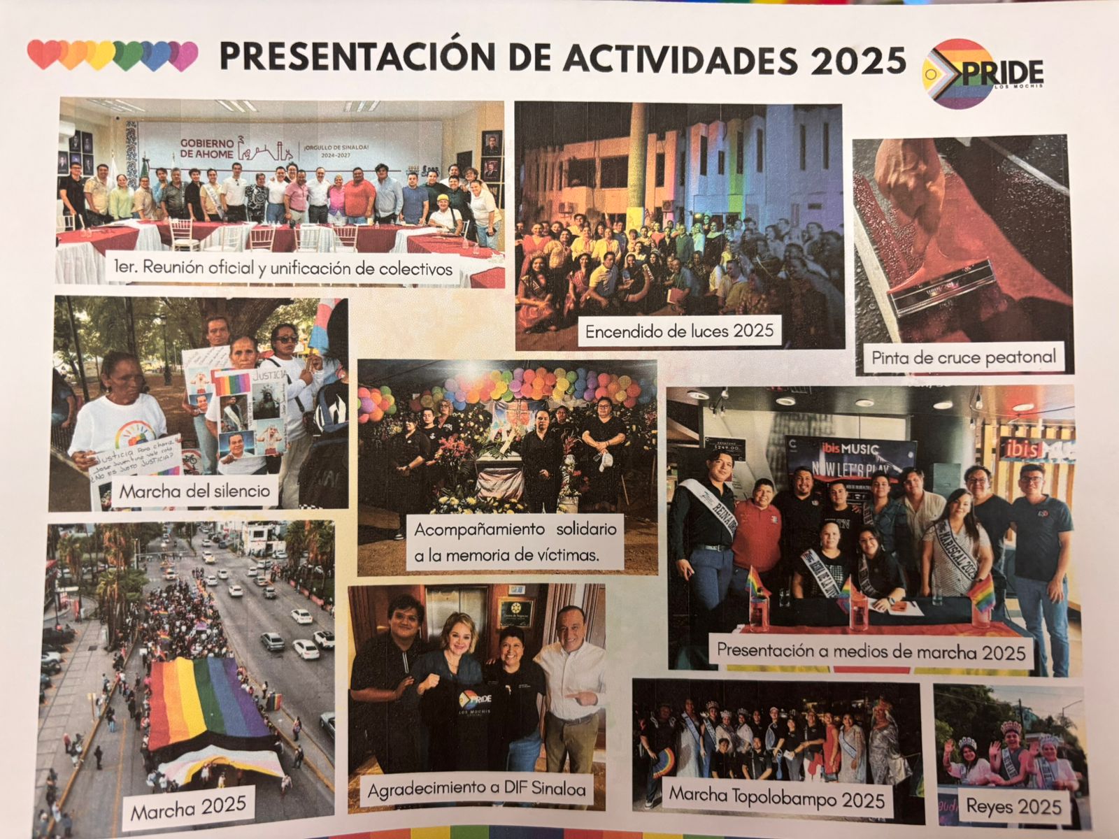 En el evento también se realizó un recuento de todas las actividades que realizó el movimiento Pride Los Mochis como la marcha del silencio por los integrantes que fueron víctimas de odio en la zona norte, encendidos de luces, la reunión y la unificación de colectivos LGBT, la pinta del cruce peatonal y la reciente marcha en Topolobampo 2025.