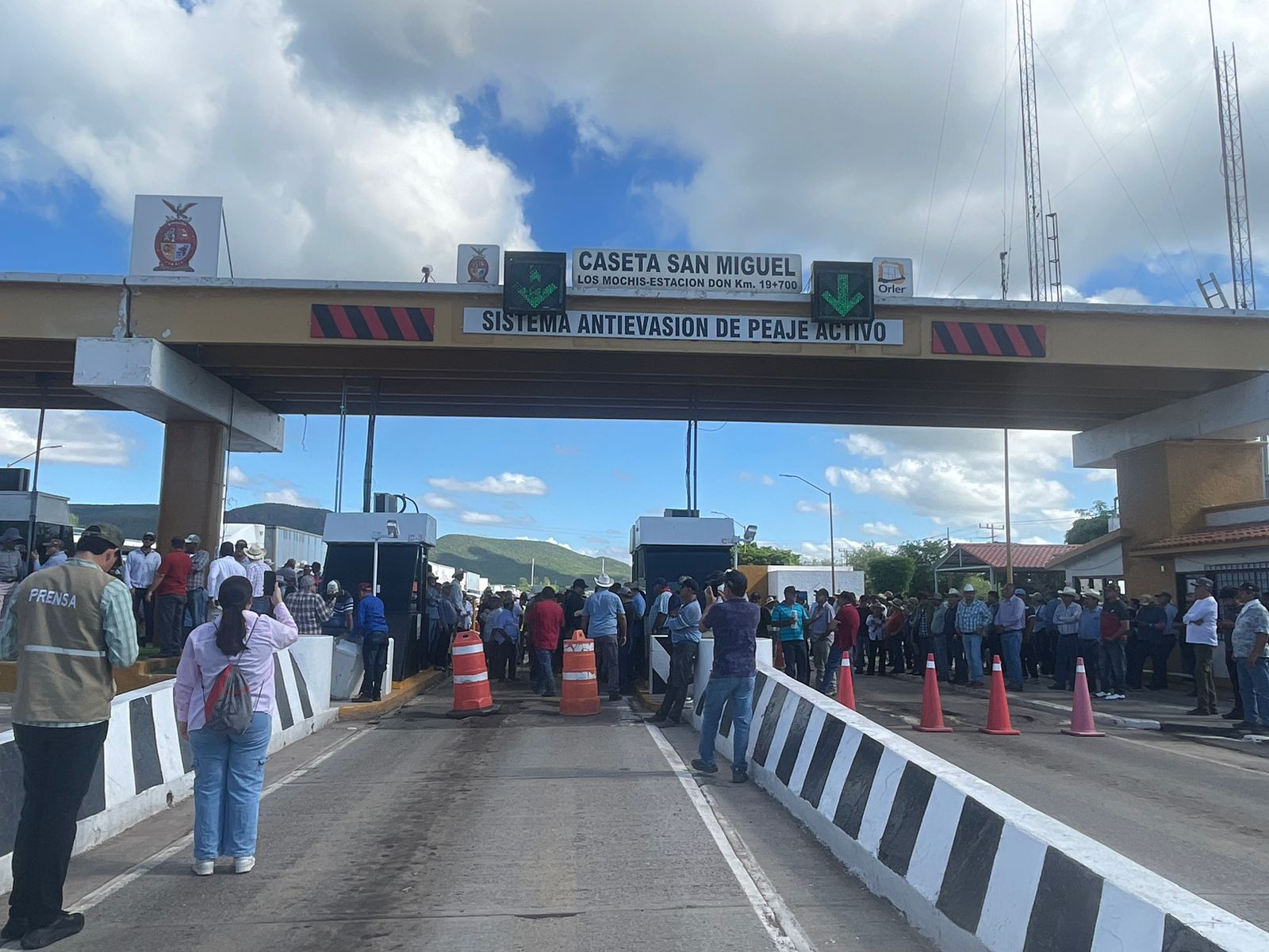 San Miguel Zapotitlán, Sin.- Decenas de productores agrícolas del norte de Sinaloa se unieron al Paro Nacional Agropecuario e iniciaron las acciones de protesta alrededor de las nueve de la mañana, primero dejando libre paso por la caseta de San Miguel por unos minutos, ya que poco antes de las diez de la mañana cumplieron con el objetivo de cerrar la circulación por los cuatro carriles.