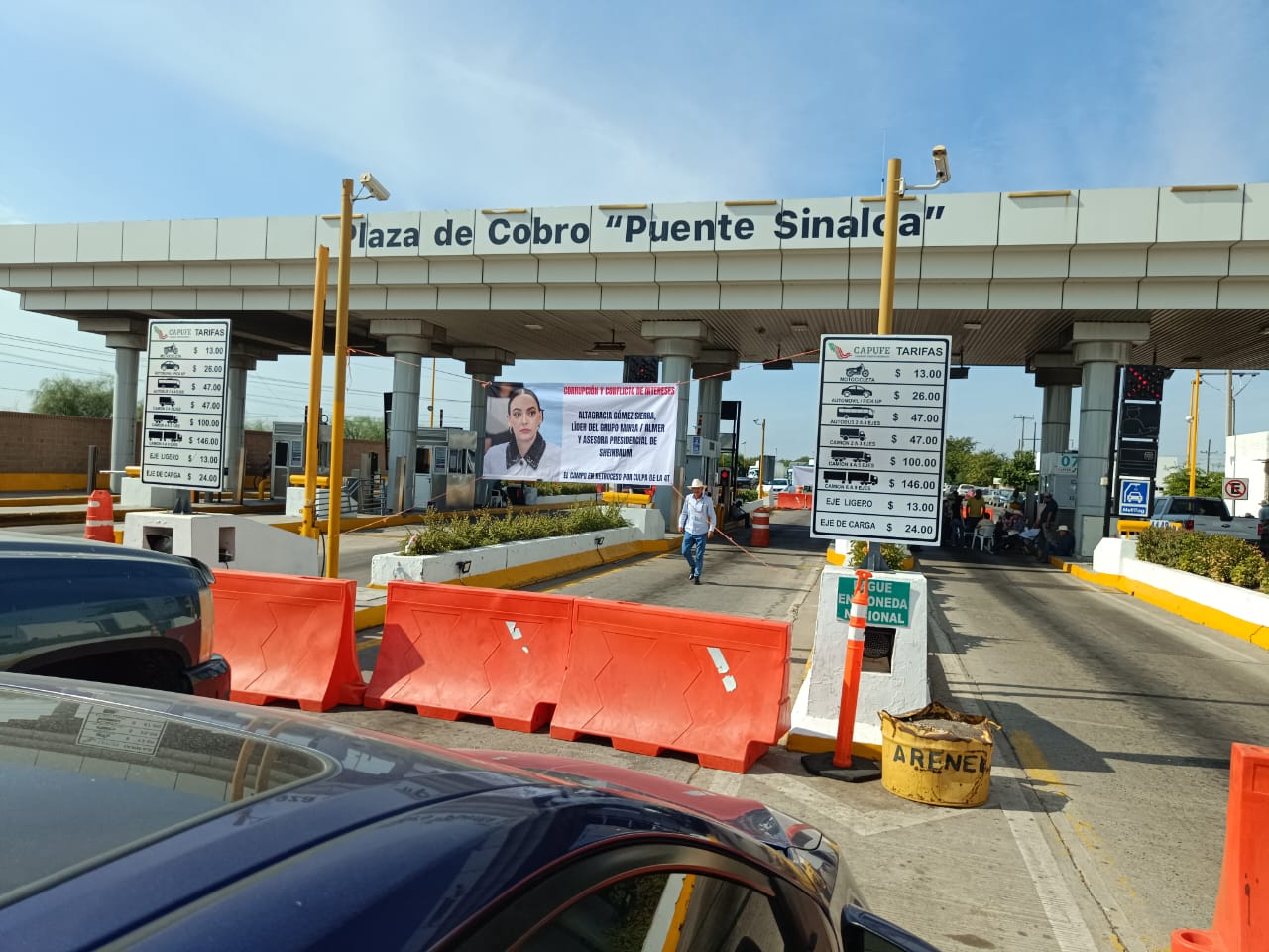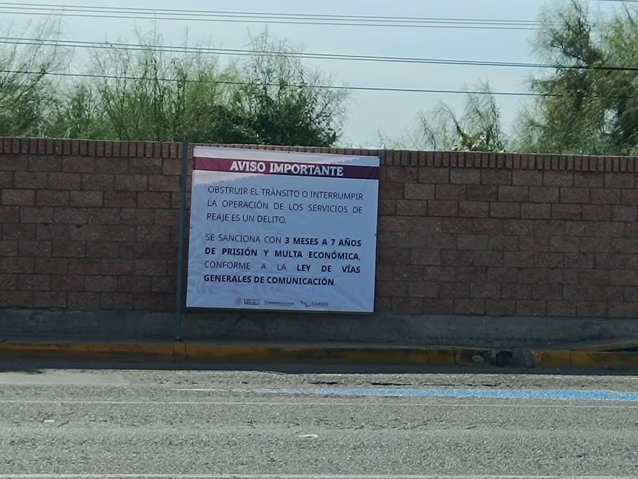 Cabe mencionar que el personal de CAPUFE hizo lo propio y también colocaron una lona donde se recuerda que se puede sancionar con 3 meses y hasta 7 años de prisión o la aplicación de multa económica conforme a la ley de vías generales de comunicación ya que obstruir el tránsito o interrumpir la operación de los servicios de peaje es un delito.