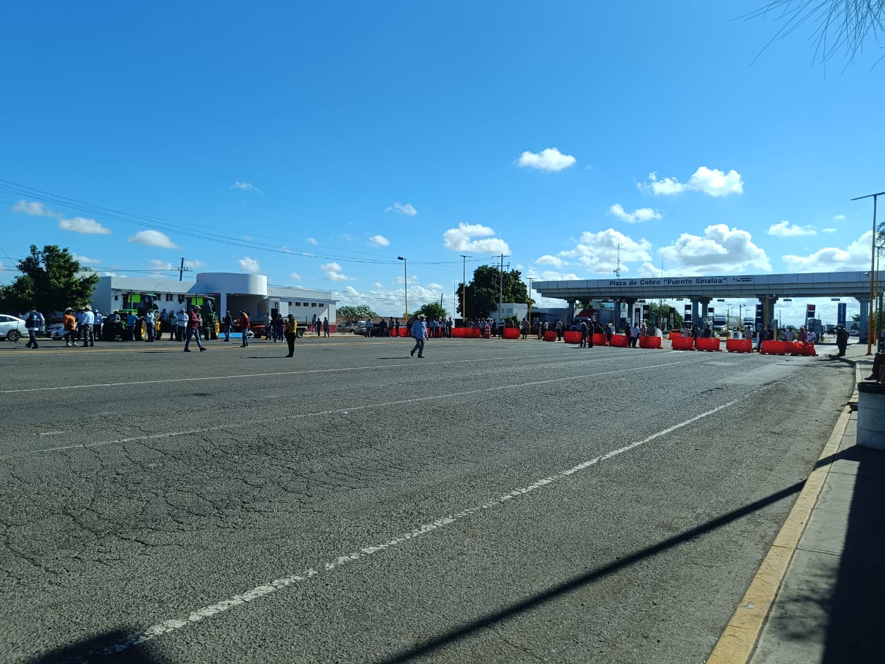 Guasave, Sin.- Productores cumplen su amenaza y bloquean el tráfico de manera total en la caseta de cobro de Cuatro Caminos en Guasave.
