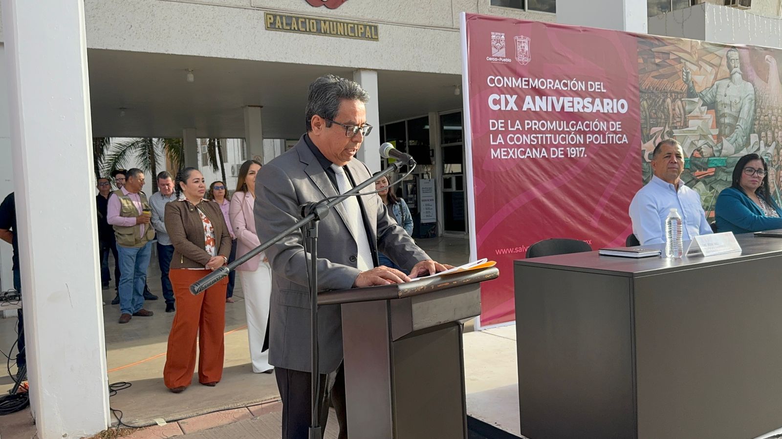 El orador de este acto cívico, José del Refugio Ramírez Andrade, expresó que, la promulgación de la Constitución Política Mexicana del año 1917 es uno de los legados más importantes que dejó la Revolución Mexicana para el país, ya que tuvo como propósito principal articular el desarrollo de la nación, además dotar a México de estabilidad legal, lo cual fue fundamental para la construcción del país traes el proceso armado.