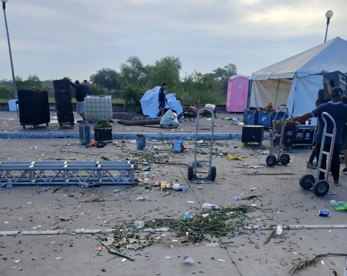 “Levantamos de donde estaba el escenario, por la calle y por las banquetas, ahí aproximadamente fueron como unos mínimo porque andan todavía vaciando, andan tirando ahí, pero como miramos los remolques y los camiones, llevan aproximadamente como 5 toneladas y media, nada más en el malecón. Entonces quiere decir que durante los 3 días fueron cerca de 15, 20. Sí, yo creo que sí. Nos faltaría lo de hoy, de lo que es el central, pero el central ya quedó limpio”.