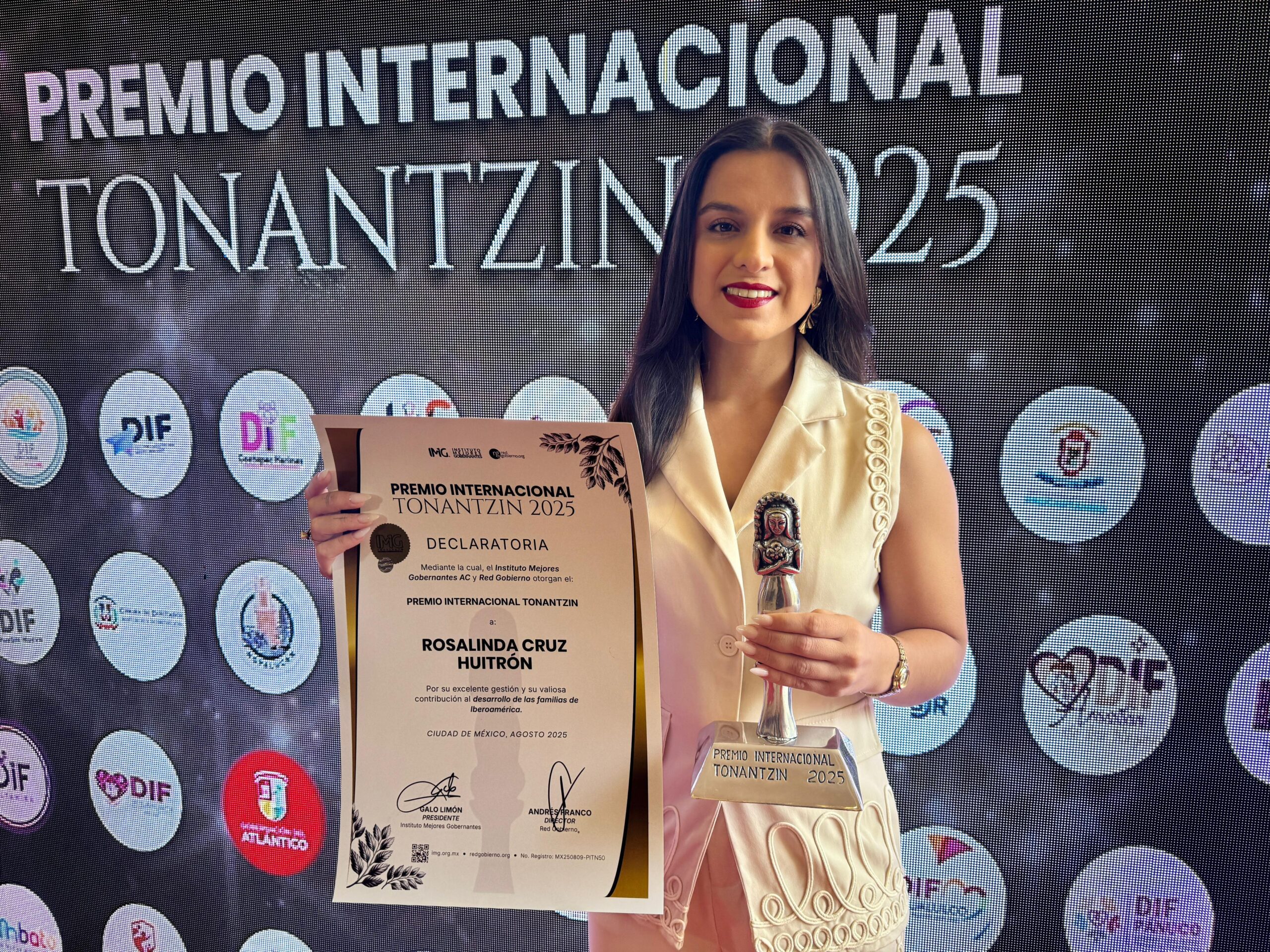 Guamúchil, Sin.– En una emotiva y significativa ceremonia celebrada en la Ciudad de México, la directora del Sistema DIF Salvador Alvarado, Rosalinda Cruz Huitrón, fue distinguida con el Premio Internacional Tonantzin 2025, un galardón que otorgan el Instituto Mejores Gobernantes A.C. y la Red Gobierno, en reconocimiento a su destacada gestión y valiosa contribución al desarrollo de las familias.