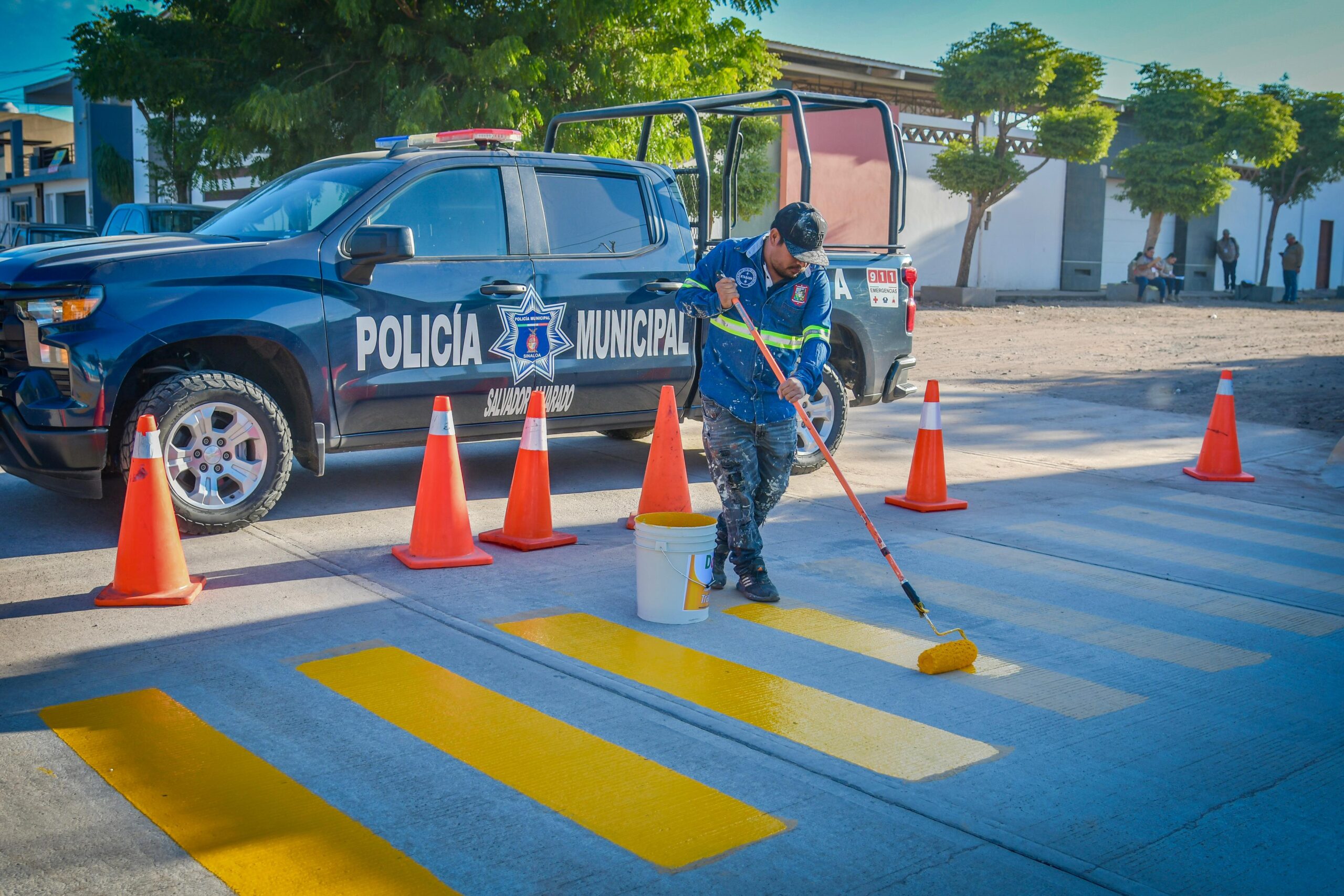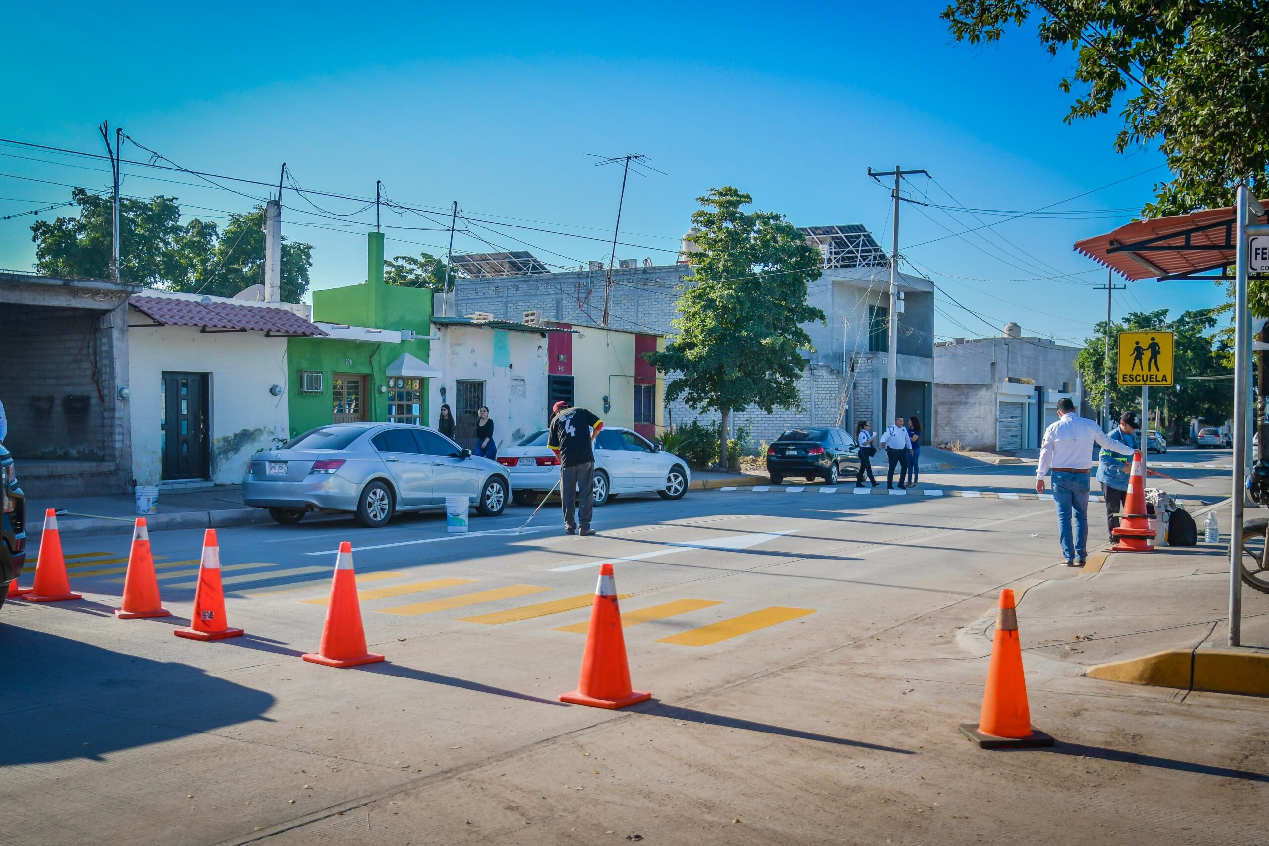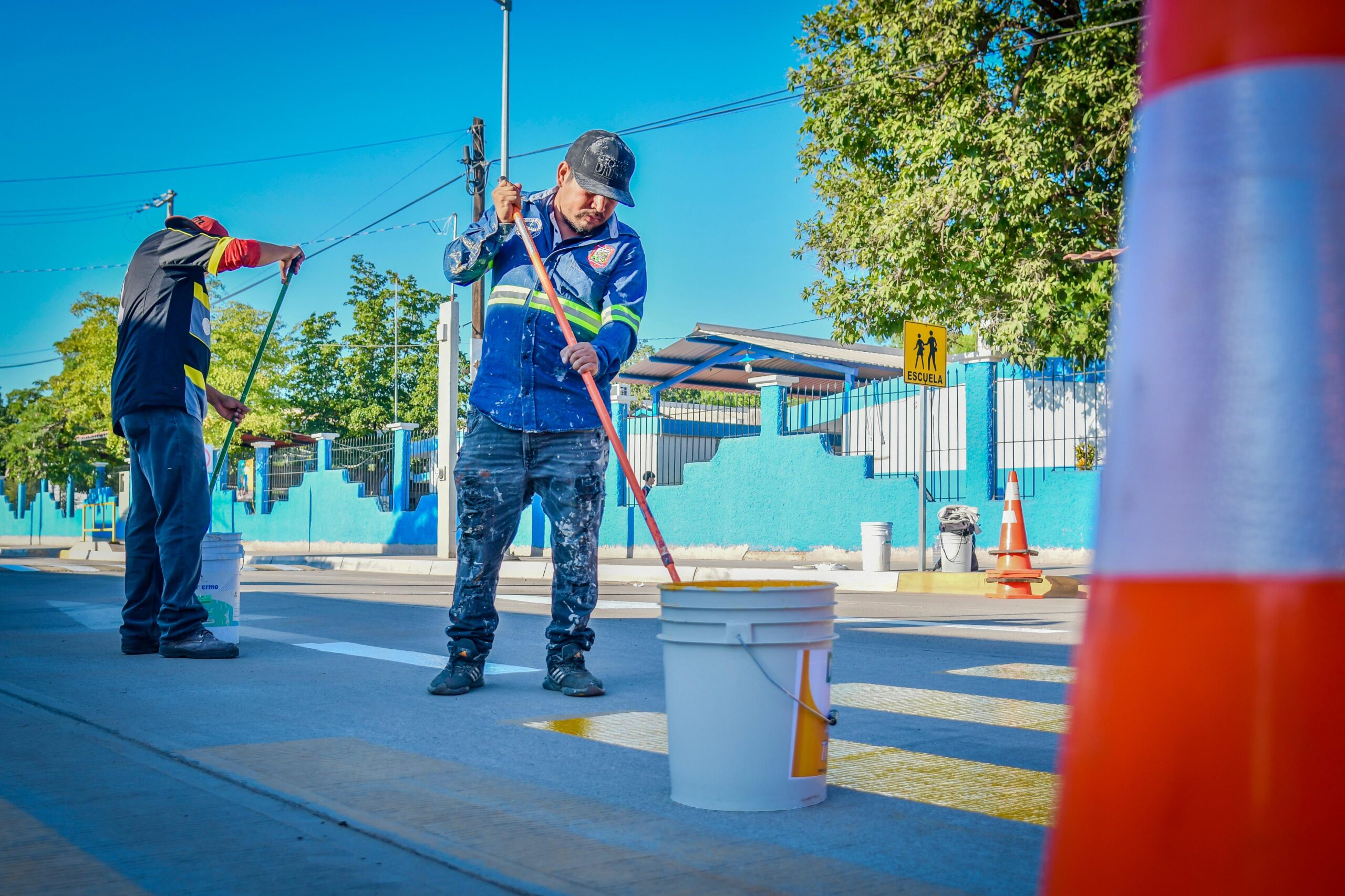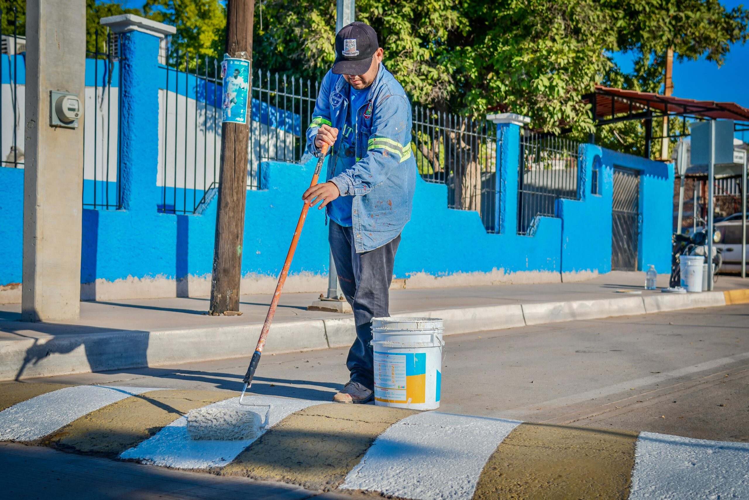 En esta ocasión, las acciones se llevaron a cabo sobre la calle Vicente Guerrero, en la colonia Cuauhtémoc, donde se localiza la escuela primaria Ford número 8. En el lugar se realizaron trabajos de pintura de topes y flechas de señalización, con el fin de que la vialidad opere en un solo sentido.