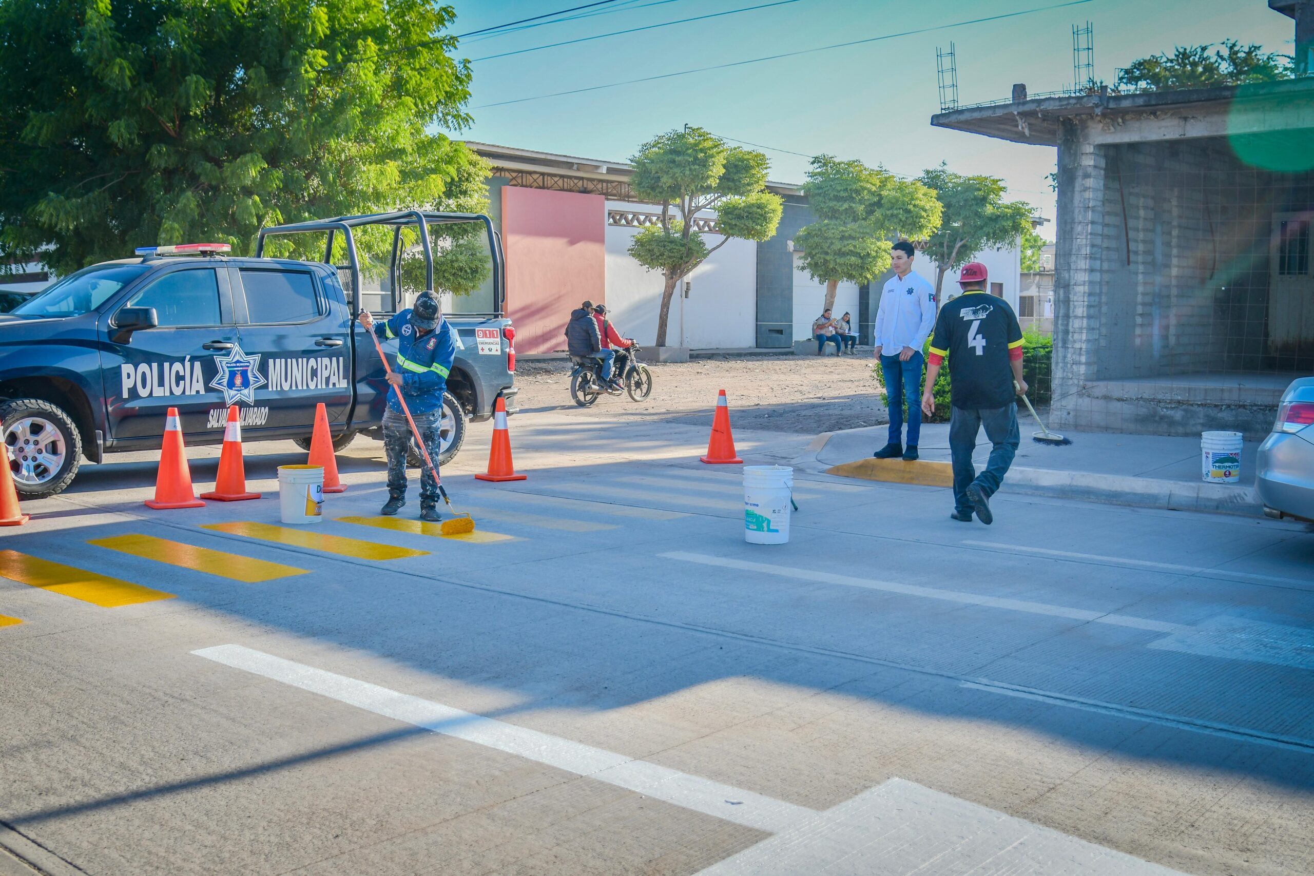 Guamúchil, Sin.- Por indicaciones de la presidenta municipal Lupita López González, el área de Movilidad Sustentable continúa implementando acciones de señalización vial y capacitación en instituciones educativas del municipio, con el objetivo de mejorar la circulación vehicular y peatonal, así como fortalecer la seguridad de las y los estudiantes.