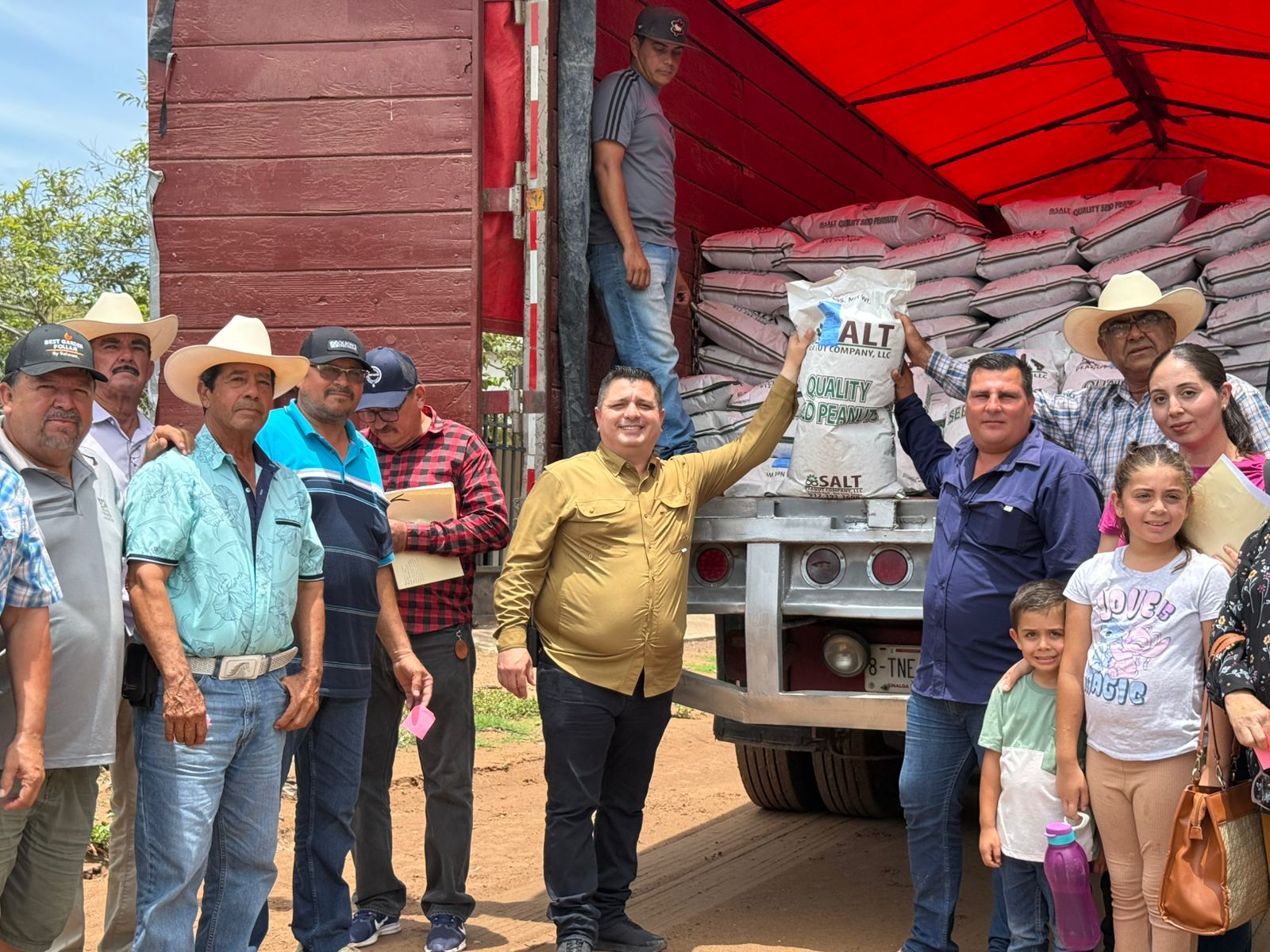 Angostura, Sin.- Este lunes, el Presidente Municipal, Alberto «El Capy» Rivera, encabezó la entrega de la primera etapa del apoyo del programa de la Secretaría de Agricultura del Gobierno del Estado, «Mejoramiento de Semilla de Cacahuate 2025» a productores de temporal del Ejido Santa María del Playón.