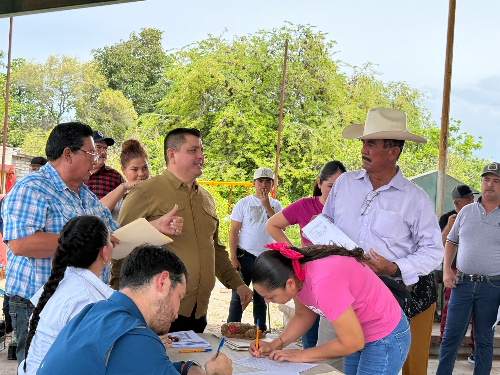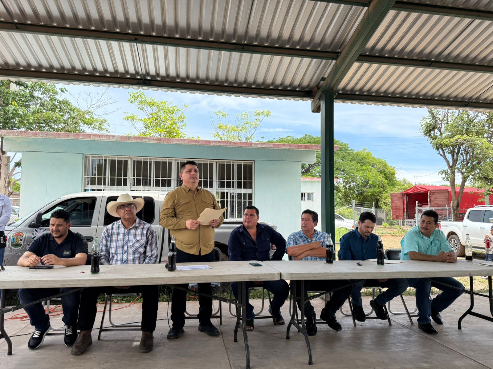 Acompañaron al alcalde, el secretario del Ayuntamiento, Manuel Ceyca Camacho, el director de Agricultura, Gregorio Alberto Trujillo Carrera, el comisariado del Ejido Santa María del Playón, Saúl Ruelas López, por parte de la compañía proveedora, Antonio Román Aldana y el productor, Nicanor García Lugo.